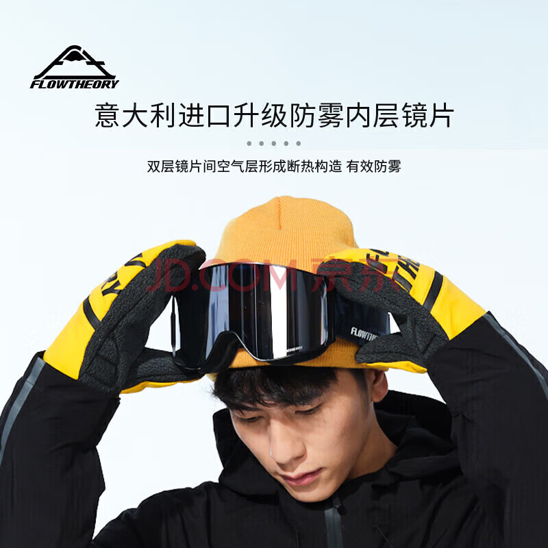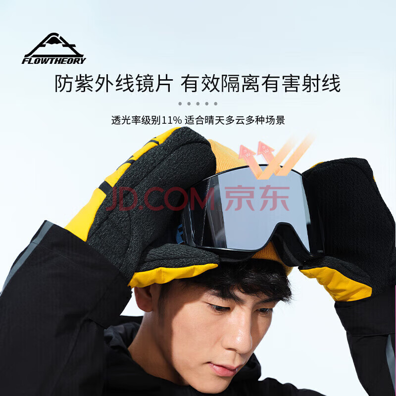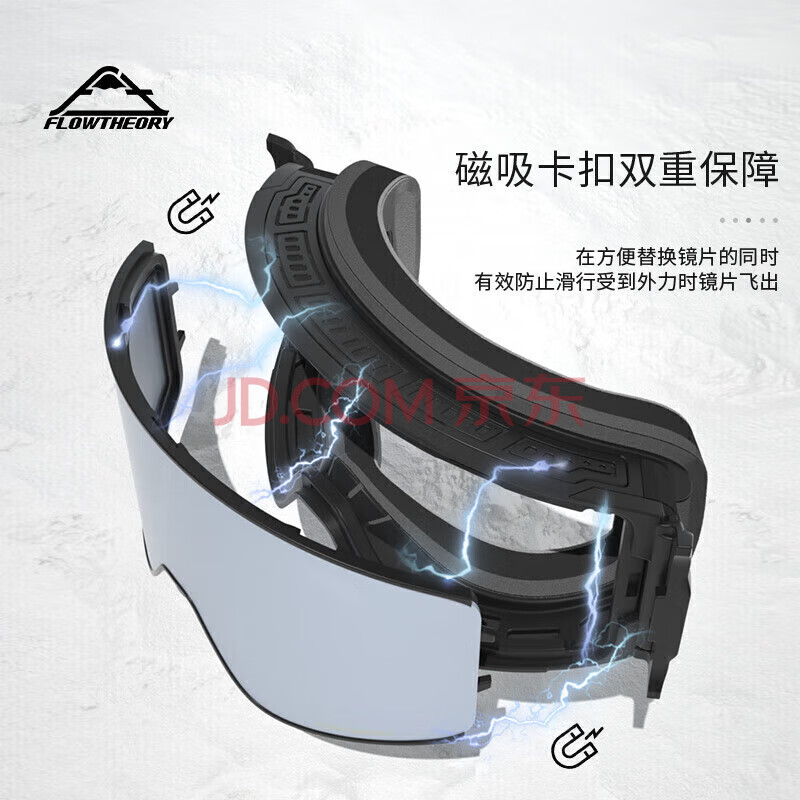 商品相册:Flow Theory滑雪镜双层防雾磁吸镀膜抗UV滑雪眼镜护目镜滑雪装备 黑框铂金片第