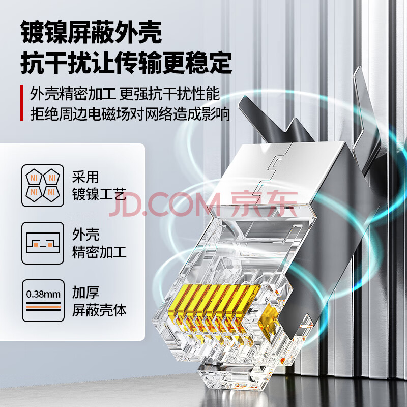 商品相册:安普康(AMPCOM)千兆六类屏蔽网线水晶头 50U铜壳RJ45镀金1.3孔径8P8C电脑CAT6类燕尾夹网络连接头10个AMC65010H第