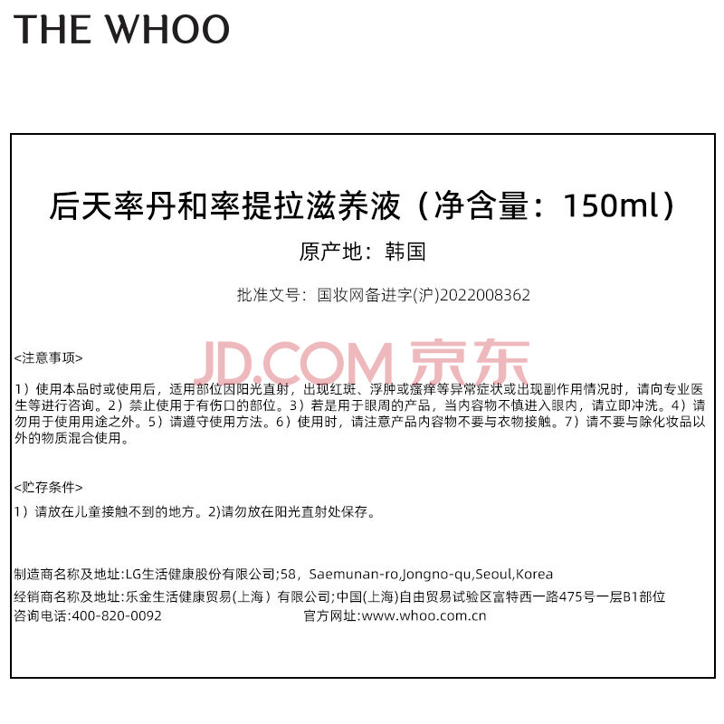 商品相册:后Whoo天率丹和率提拉滋养液150ml保湿爽肤水提拉紧致生日礼物第1张/共2