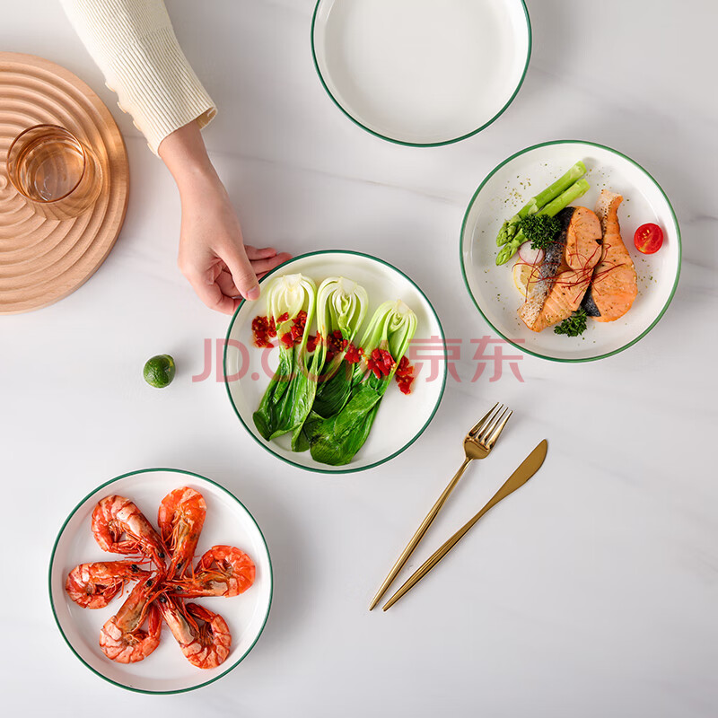商品相册:传旗 陶瓷餐盘 8英寸4只 家用餐具 釉下彩雅玉菜盘牛排盘饺子盘第