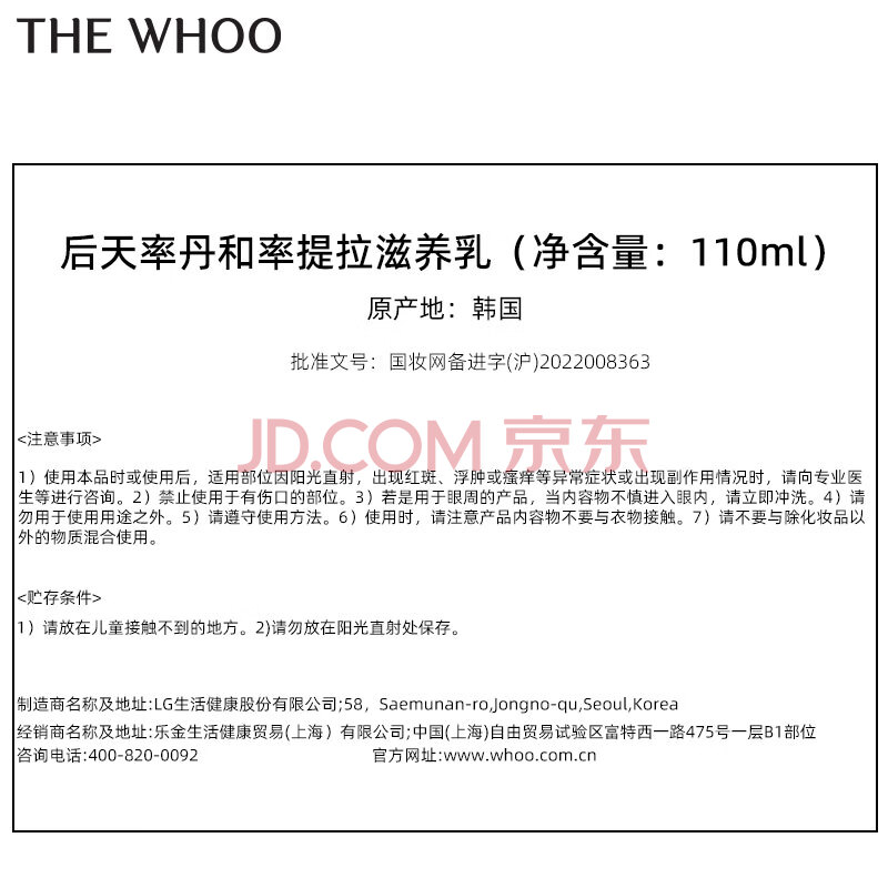 商品相册:后Whoo天率丹和率提拉滋养乳110ml紧致保湿乳液女士生日礼物第