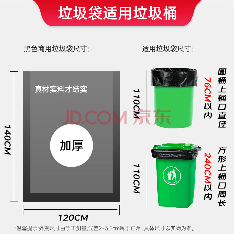 商品相册:简丫平口垃圾袋黑色120x140cm50只1.4丝加大加厚款商用酒店物业塑料袋第