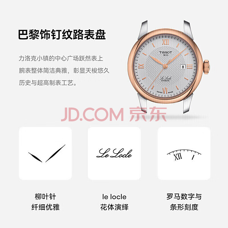 商品相册:天梭(TISSOT)手表 力洛克系列女表 瑞士自动机械女士钢带腕表商务表生日礼物第