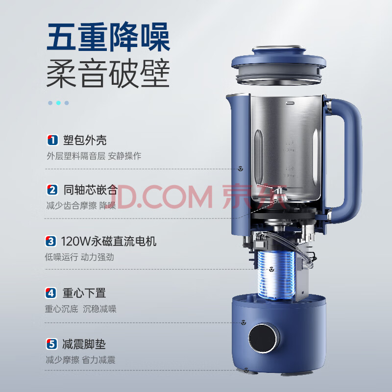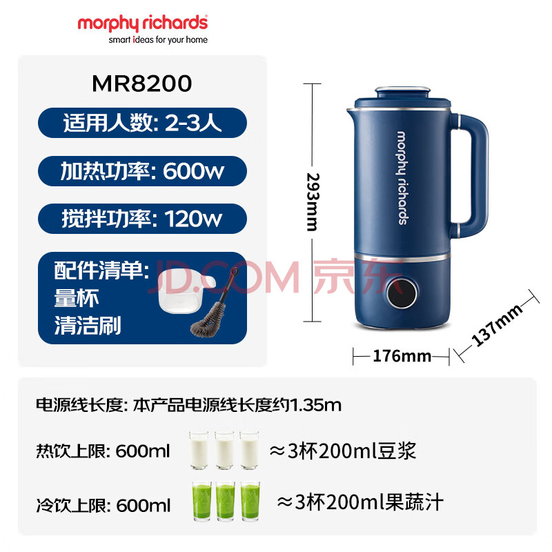 商品相册:摩飞电器(Morphyrichards)豆浆机破壁机 家用2-3人全自动清洗免过滤低音降噪 多功能菜单可预约600ml搅拌机榨汁机MR8200蓝第