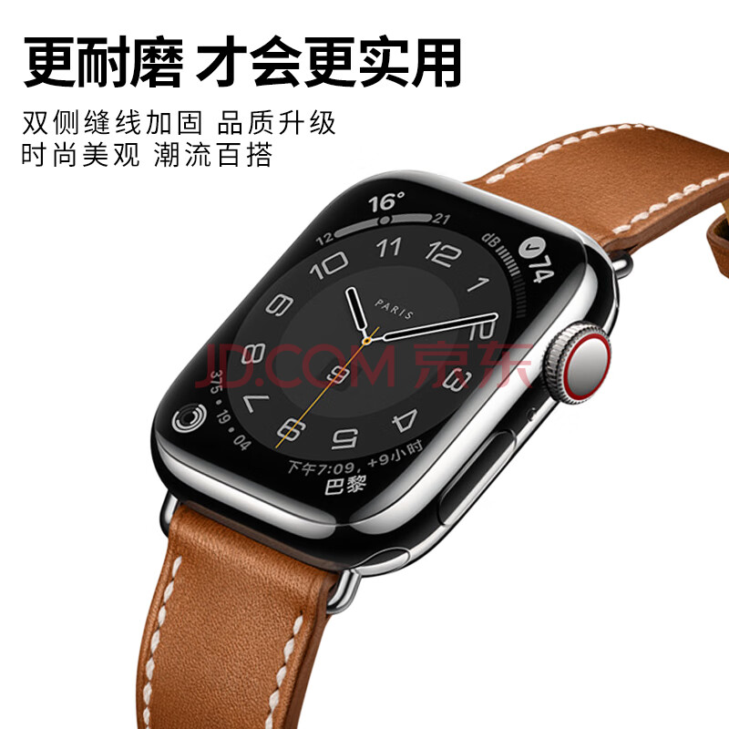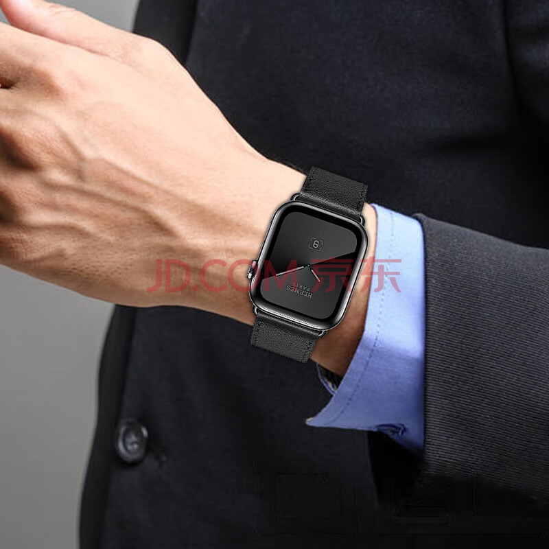 商品相册:威千图适用苹果手表表带apple iwatch S10/s9/8真皮表带爱马仕7/6/SE/ultra2小牛皮Swift男丨【黑色】第
