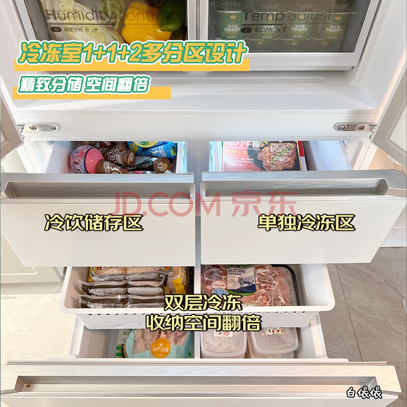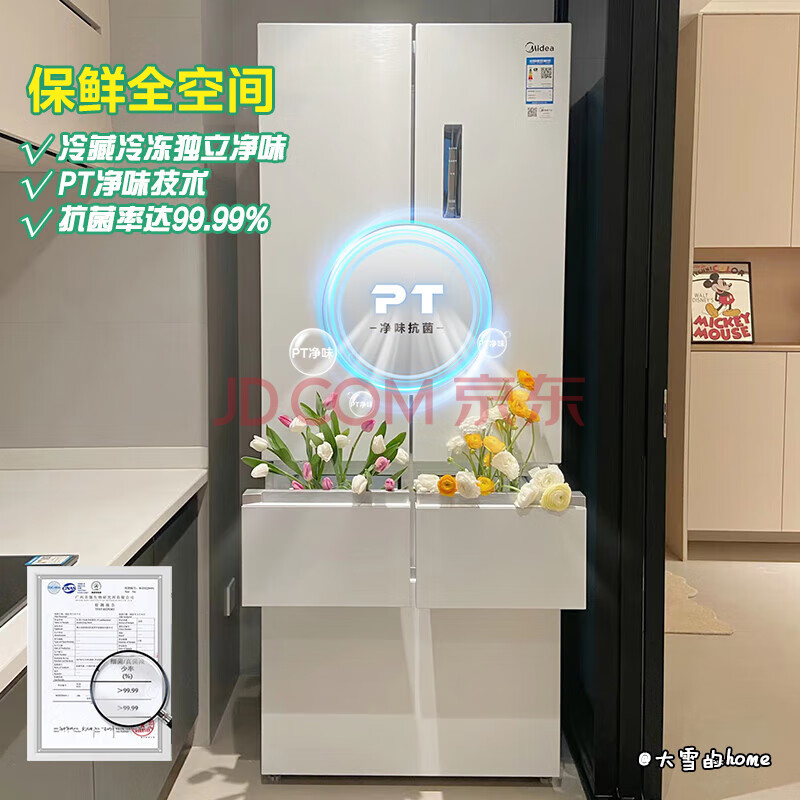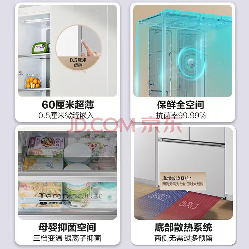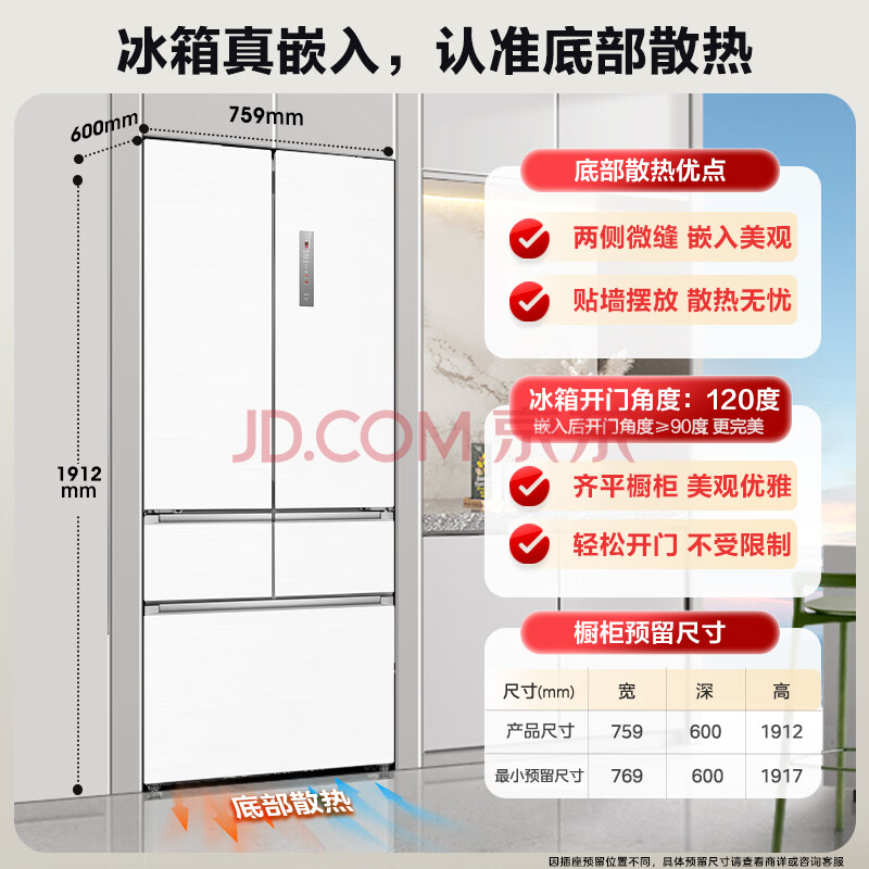 商品相册:美的(Midea)M60超薄424法式五门多门平嵌一级能效家用冰箱变频无霜BCD-424WFPZM(E)底部散热第
