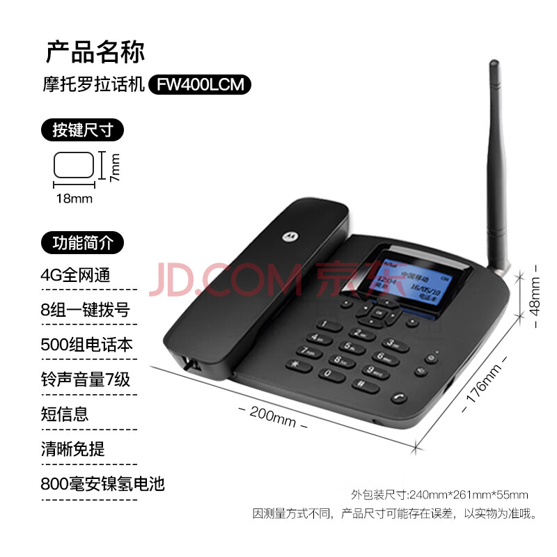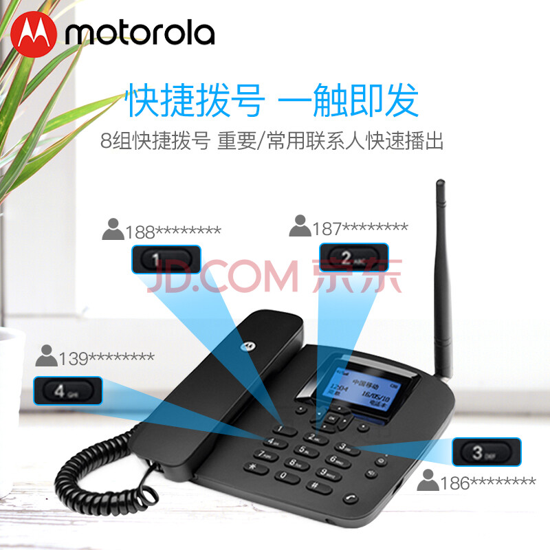 商品相册:摩托罗拉(Motorola)FW400LCM 4G全网通 插卡电话机座机 电销无线移动办公家用固话 支持移动联通电信广电卡手机卡 第
