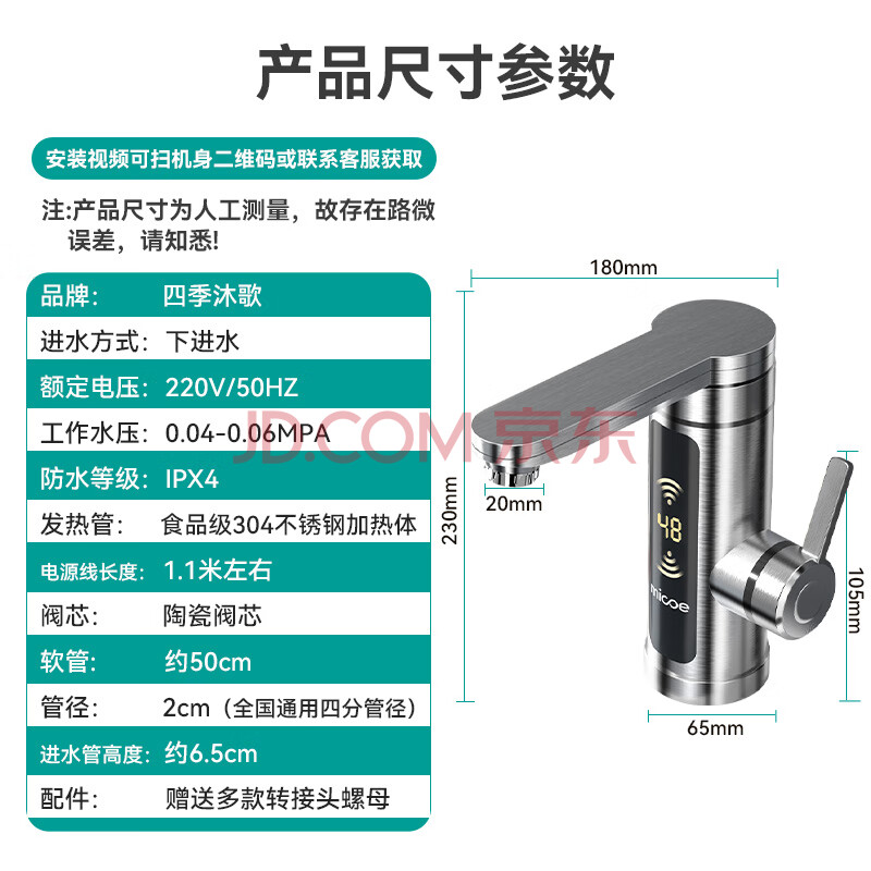 商品相册:四季沐歌(MICOE)【食品级不锈钢】电热水龙头不锈钢机身热水器厨房家用速热小厨宝即热式电加热器下进水冷热两用第