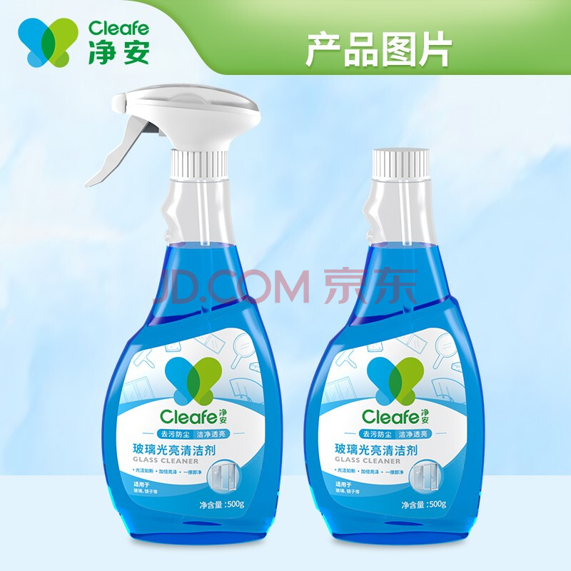 商品相册:净安玻璃水光亮清洁剂500g+500g 汽车 家用防雾防尘清洁玻璃不留水痕第
