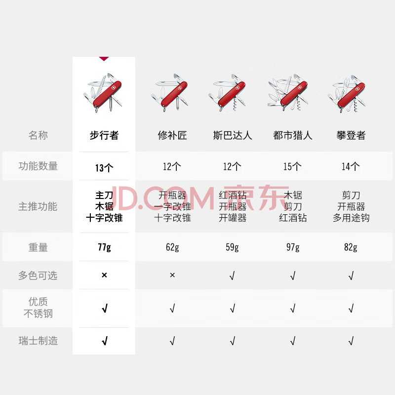 商品相册:维氏瑞士军刀步行者13项多功能水果刀刀折叠刀红色1.4613第