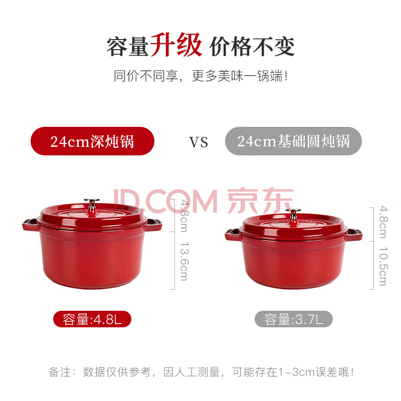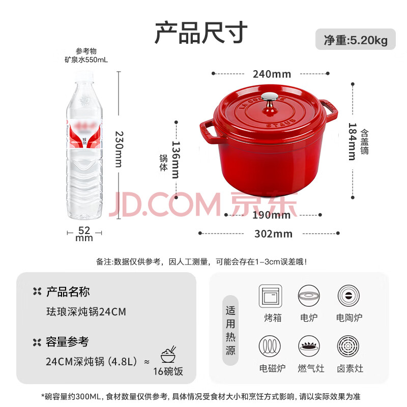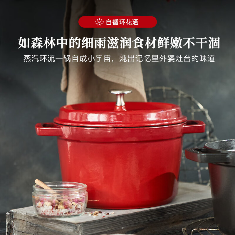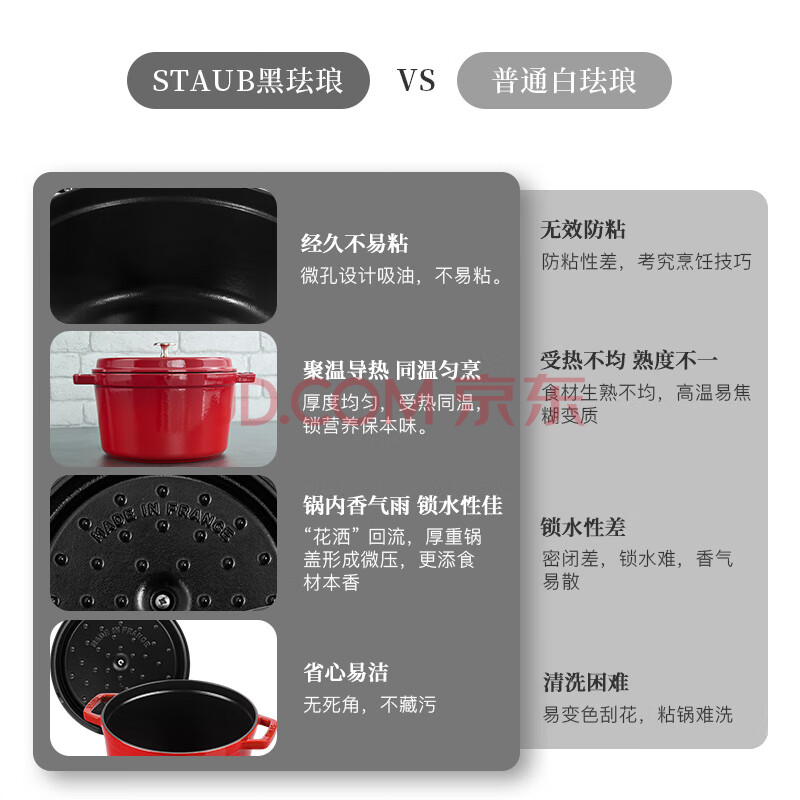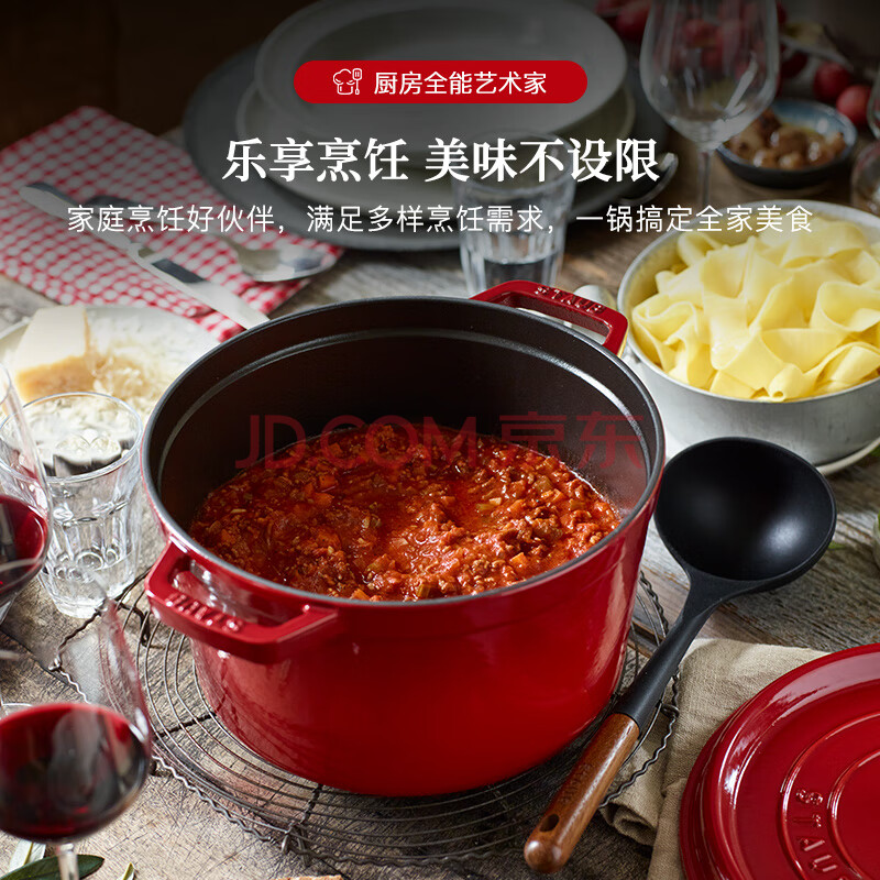 商品相册:珐宝(staub)京东限定法国进口珐琅铸铁锅双耳煲汤深炖锅樱桃红24cm 40501-485第