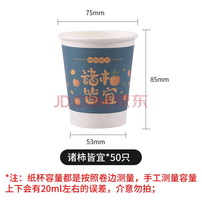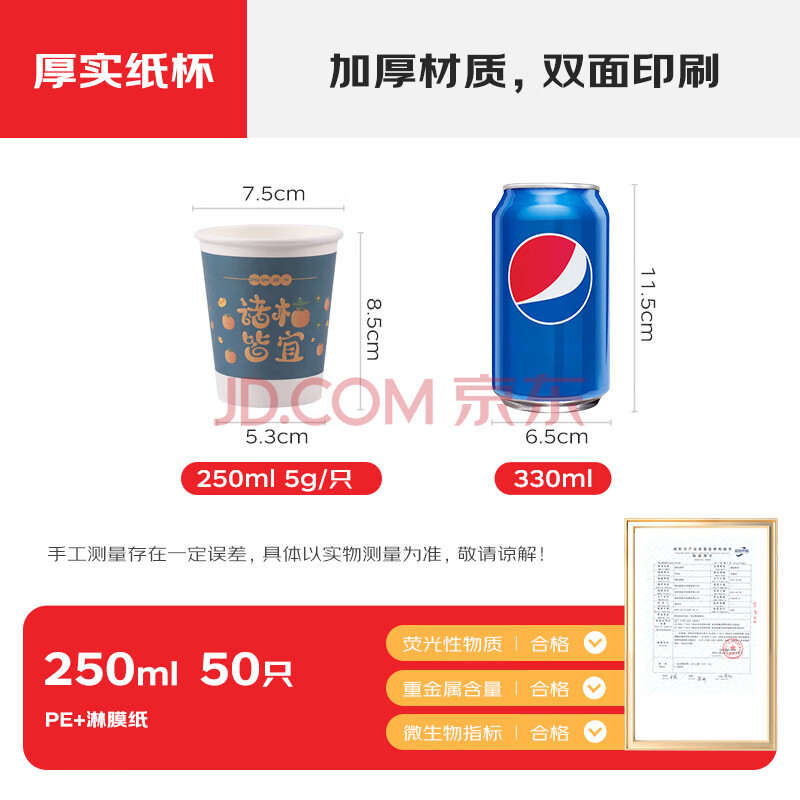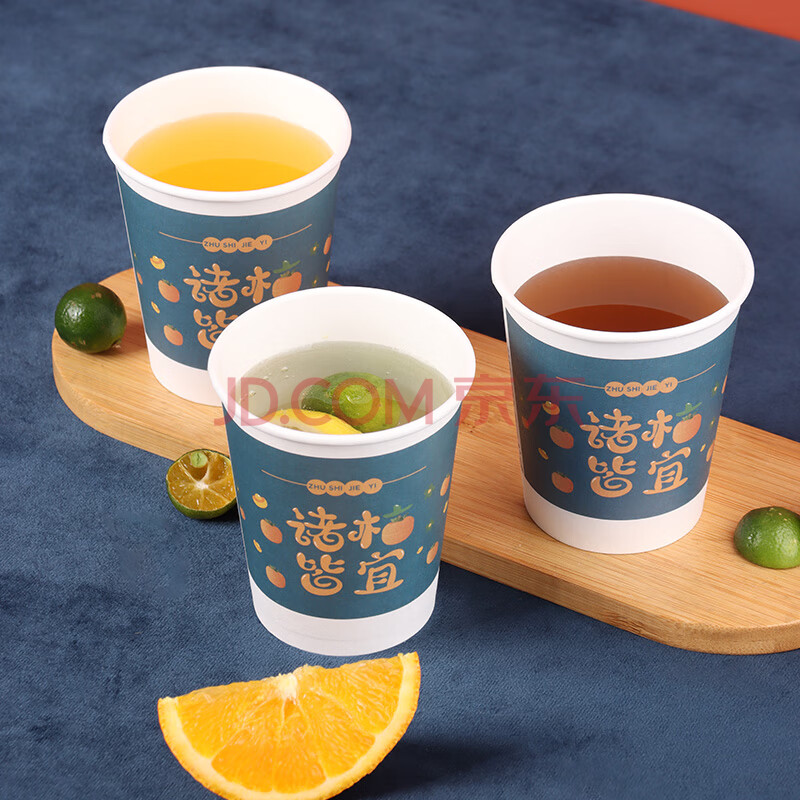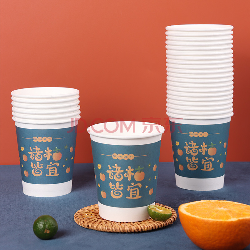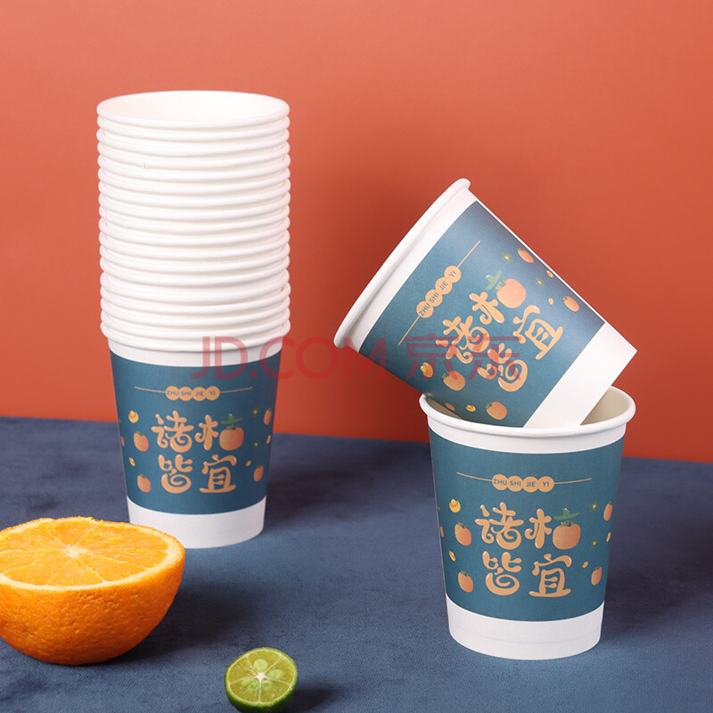 商品相册:拜杰纸杯一次性杯子家用加厚大容量茶水杯 50只装250ml 办公家用水杯第