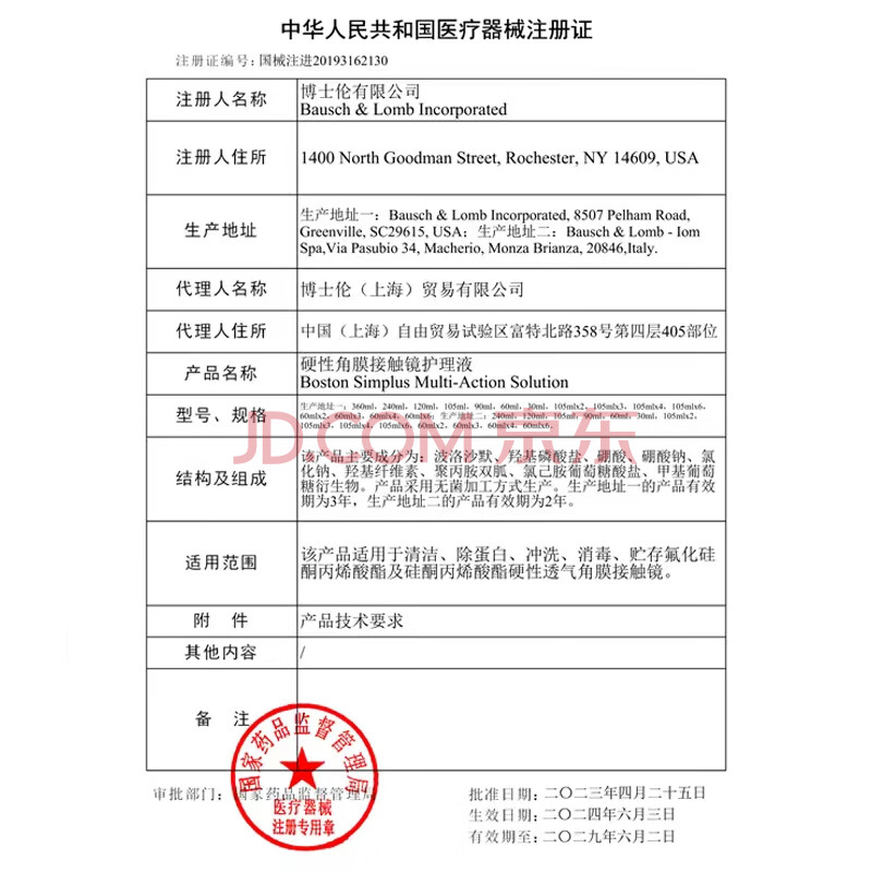 商品相册:博视顿博士伦 先进RGP硬性隐形眼镜护理液120ml*4 角膜接触镜OK镜第