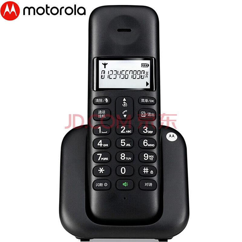 商品相册:摩托罗拉(Motorola)数字无绳电话机 无线座机 子母机单机 套装 大屏幕白色背光 清晰免提 办公家用 T301C(黑色)第