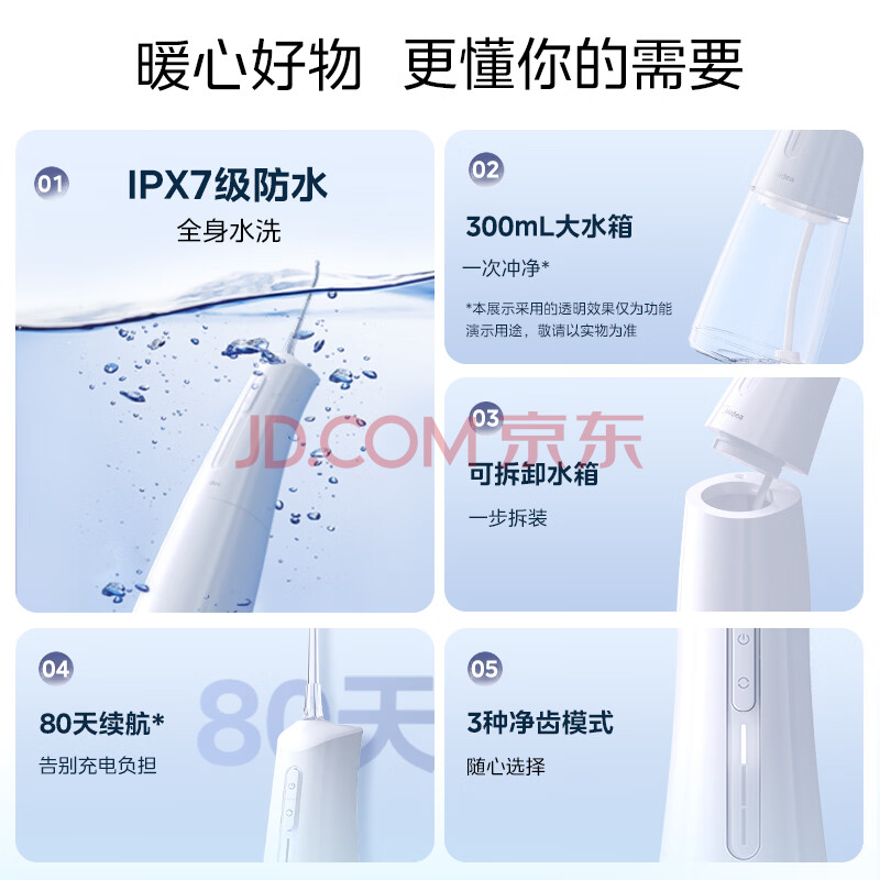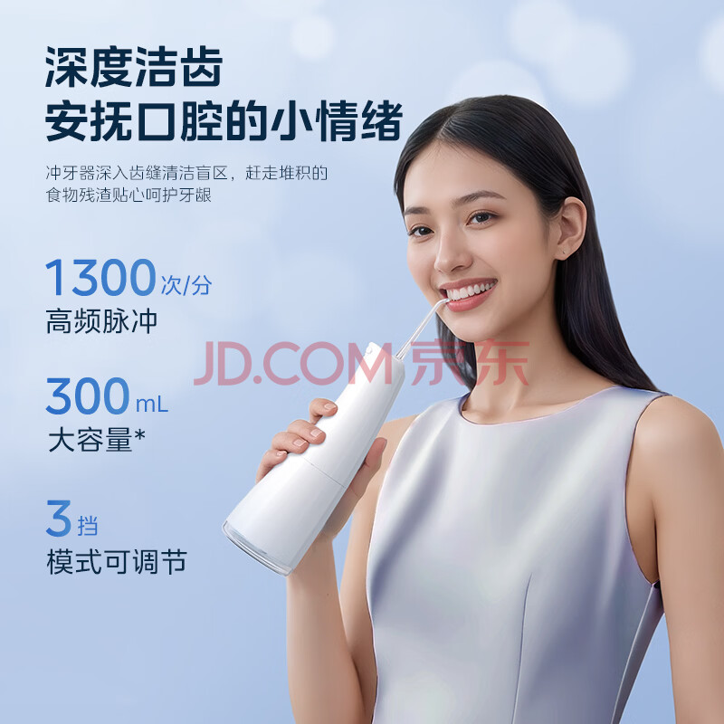 商品相册:美的(Midea)冲牙器 牙齿牙缝清洁 长续航便携式出差旅游成人家用正畸喷嘴 MC-BJ0301小白瓶情侣生日节日礼物第