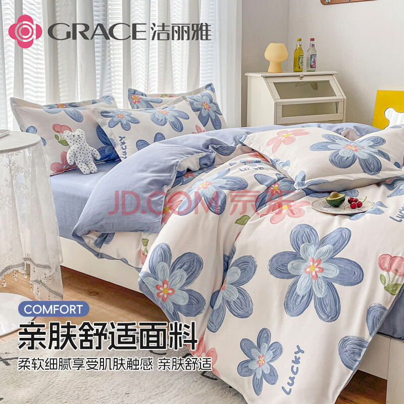 商品相册:洁丽雅磨毛四件套 7A抗菌加厚套件床单款 双人被套 丰硕年华 被套200*230cm第