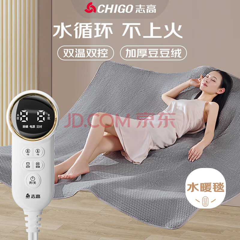 商品相册:志高(CHIGO)【高温断电】双人双控水加热暖毯炕电热毯电褥子长毛绒1.5x1.8米第1张/共7
