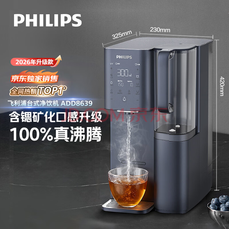 商品相册:飞利浦(PHILIPS)加热净水器 家用RO反渗透免安装即热饮水机【2026年升级款】 富锶矿化台式净饮机ADD8639/93第