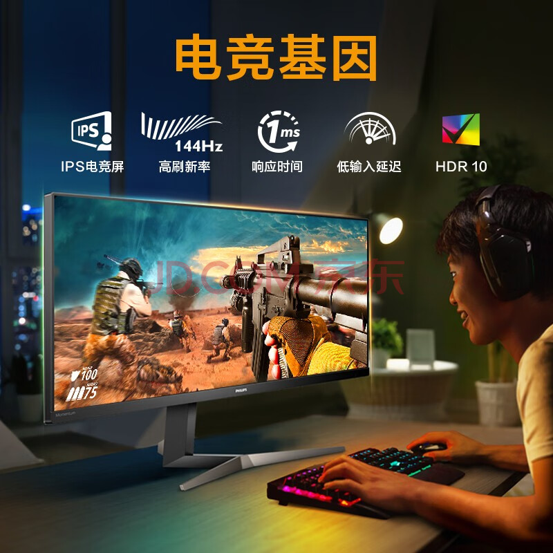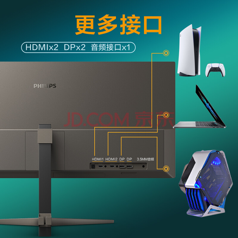 商品相册:飞利浦 34英寸WQHD IPS带鱼屏144Hz1msHDR 分屏升降 96%Adobe 电竞显示器 高清直播 PS5游戏显示屏345M2R第