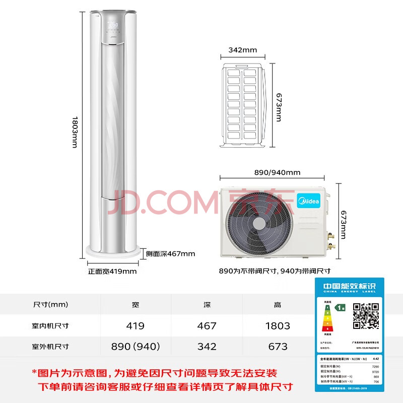 商品相册:美的空调3匹风锦二代新一级能效变频省电真柔风家用客厅空调柜机立式KFR-72LW/N8ZHB1Ⅱ第