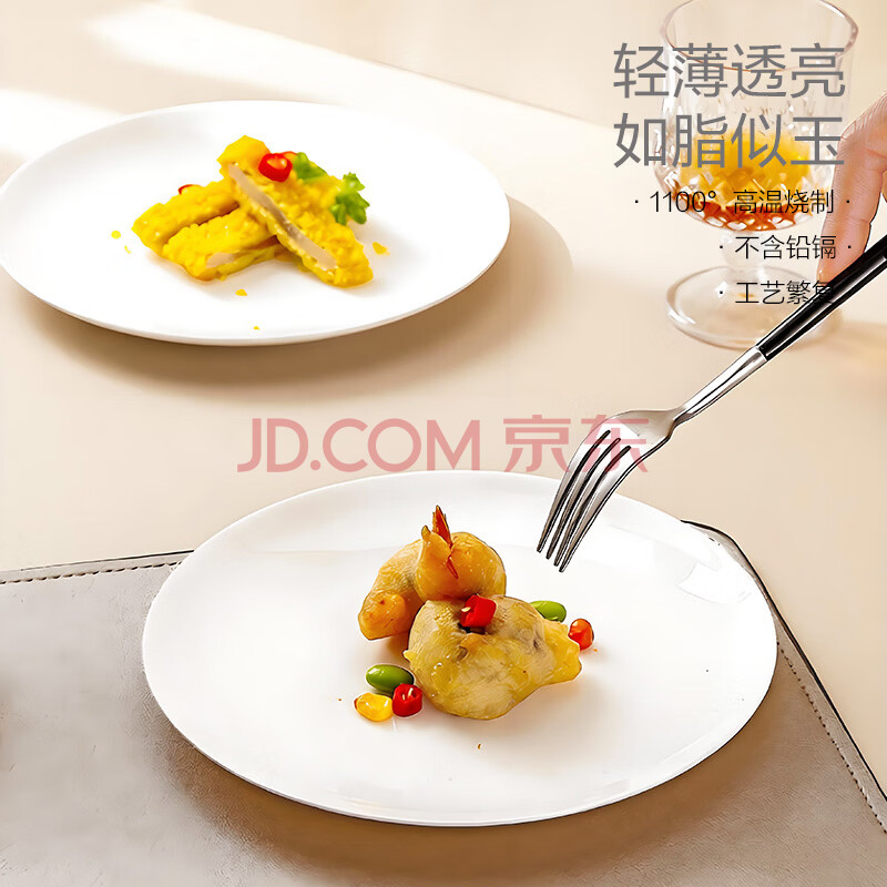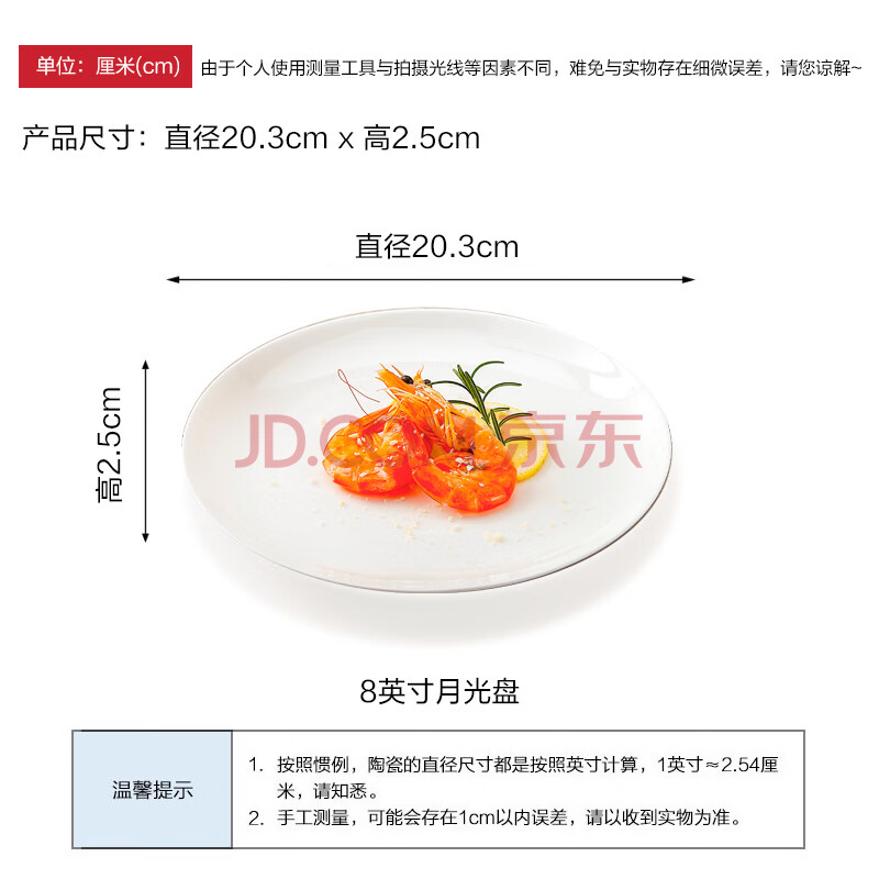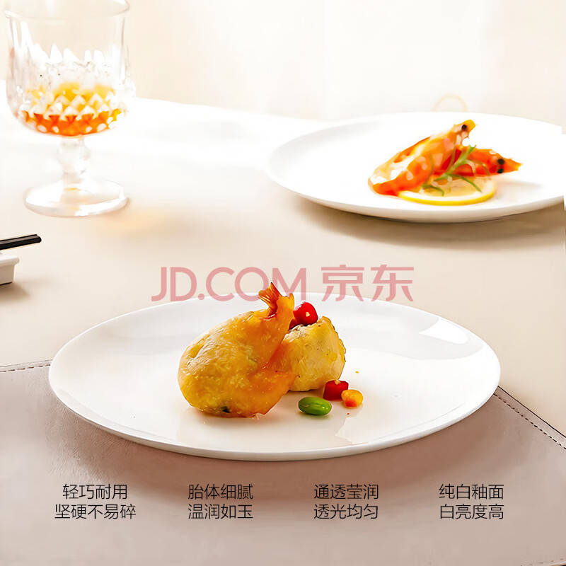 商品相册:斯凯绨(Sky Top)盘子骨瓷碟子陶瓷餐盘菜盘纯白家用酒店餐具套装8英寸月光盘4件第