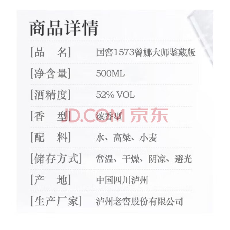 商品相册:泸州老窖 国窖1573 曾娜大师 浓香型白酒 52度 500ml单瓶装(新老版随机)第