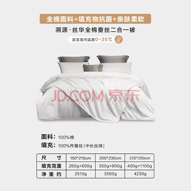 商品相册:罗莱家纺 蚕丝被子 100%全棉蚕丝二合一子母被四季通用被芯 8.5斤第