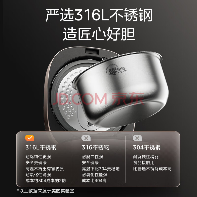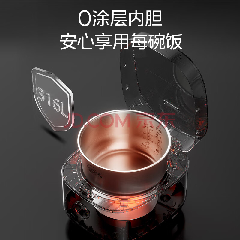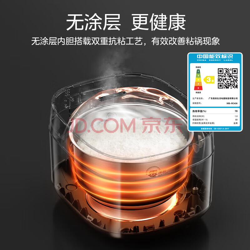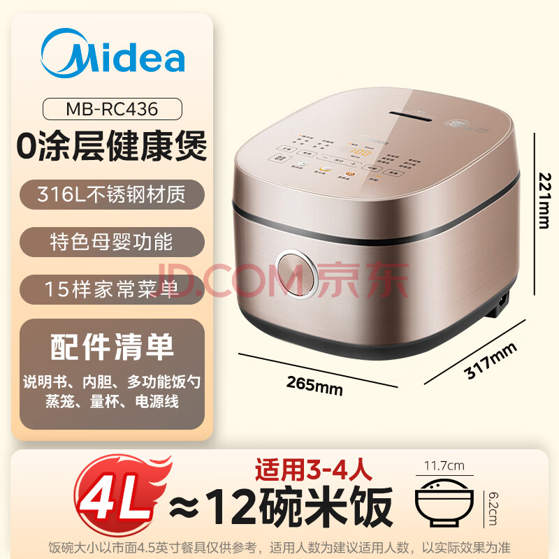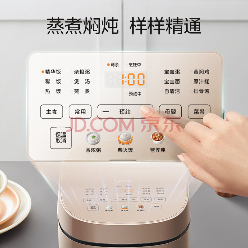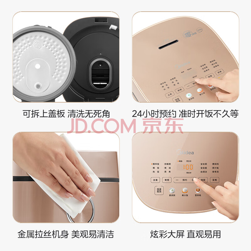 商品相册:美的(Midea)0涂层电饭煲4L无涂层家用3-4人电饭锅智能预约炫彩触控母婴级316L不锈钢微压米饭煲品牌官方RC436第