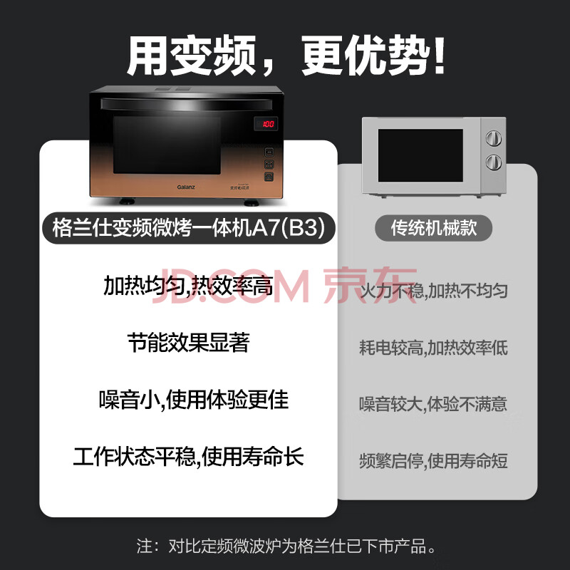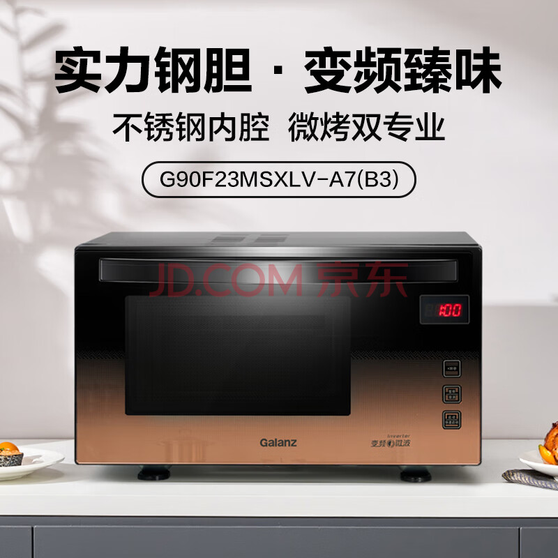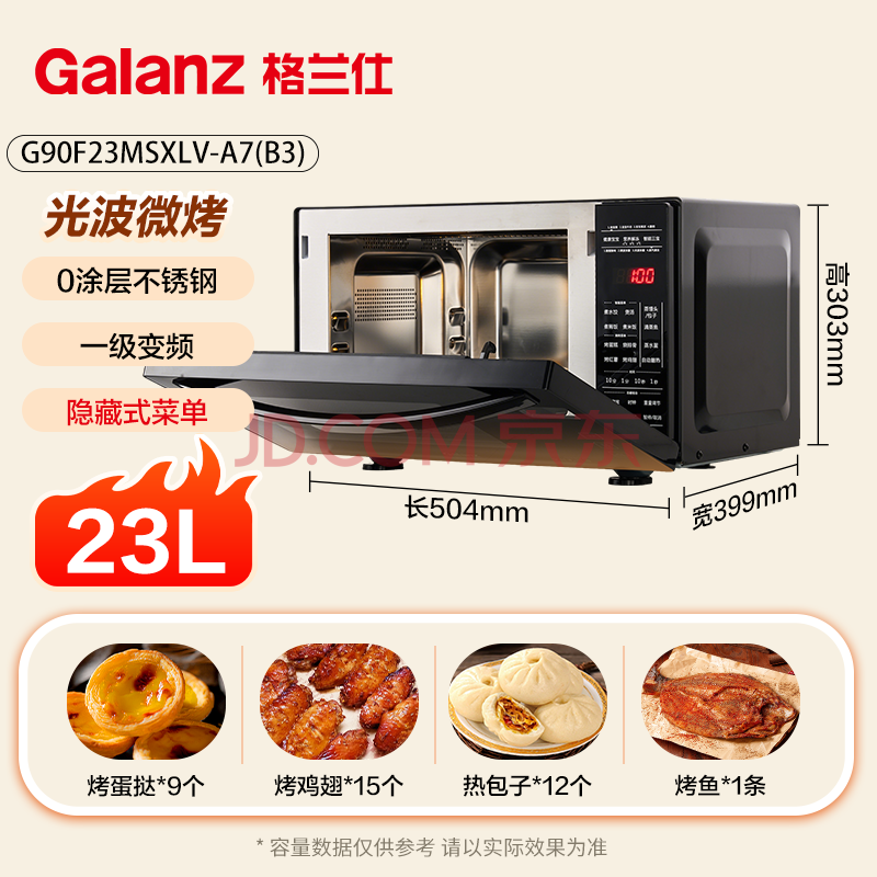 商品相册:格兰仕(Galanz)家用微波炉 变频微波炉烤箱一体机 900瓦速热 省电一级能效 23升不锈钢内胆 平板式光波炉A7(B3)第