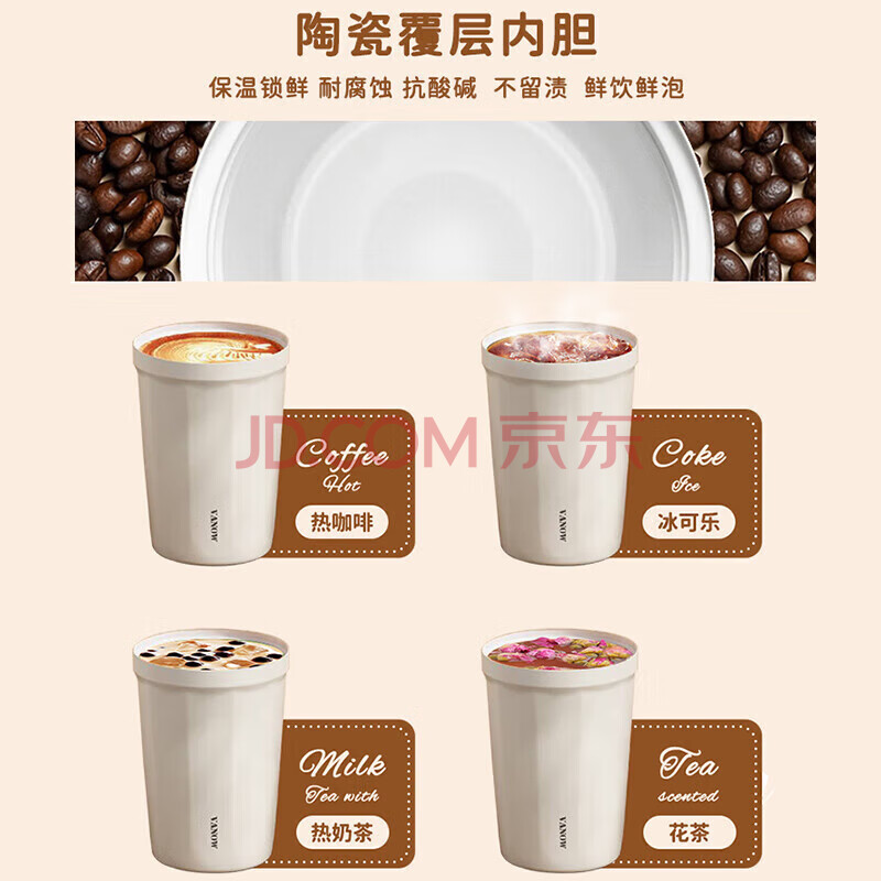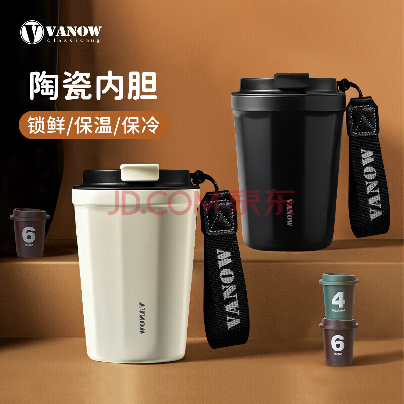 商品相册:Vanow保温杯咖啡杯男女士陶瓷内胆高颜值学生便携水杯子 烟空白第