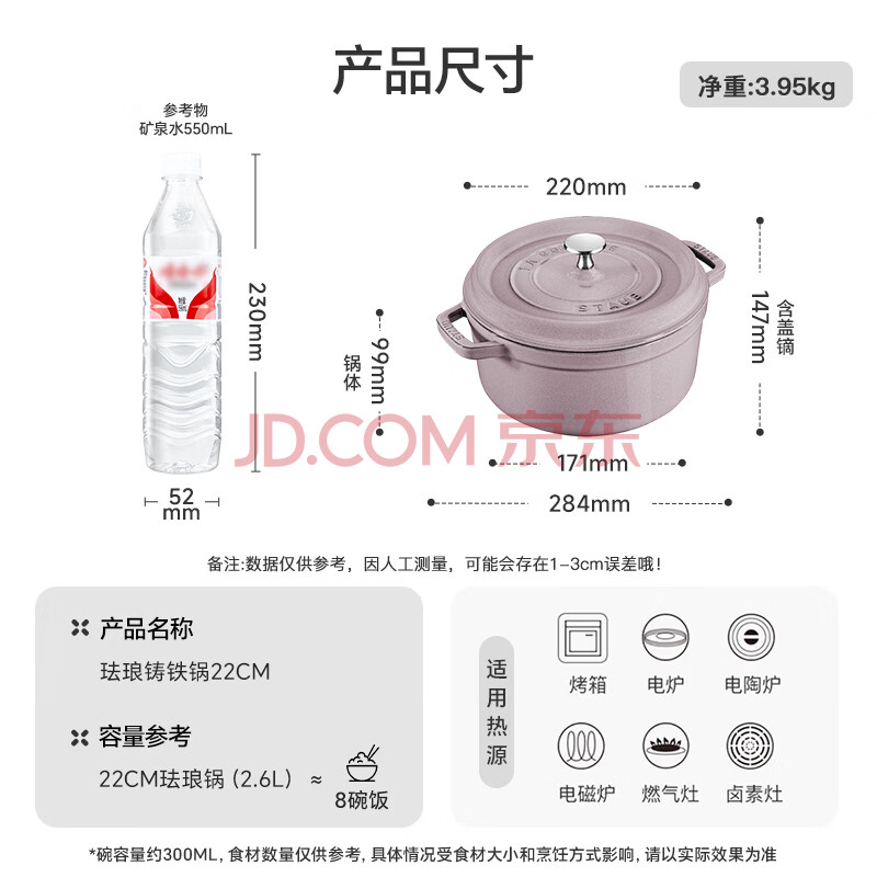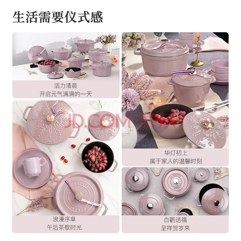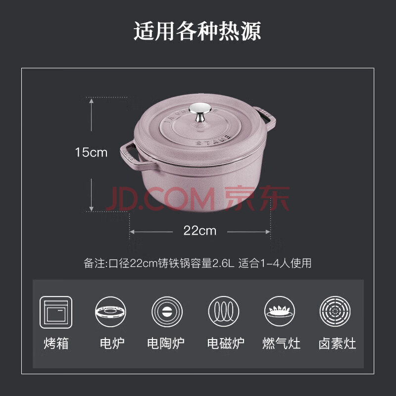 商品相册:珐宝(staub)法国进口珐琅铸铁锅夜樱粉22cm汤锅炖锅煮锅 双耳煲汤锅 1021920第1张/共9