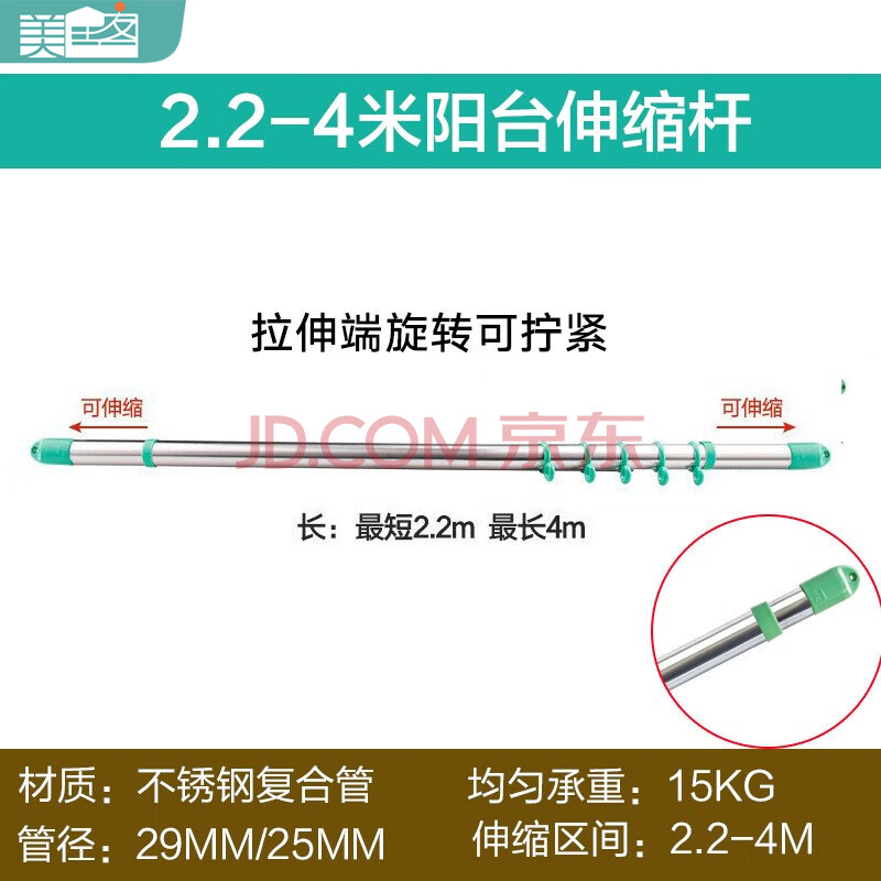 商品相册:美居客 不锈钢晒衣杆 免打孔可伸缩晾衣杆龙阳门晾衣架固定式单杆2.2-4m第