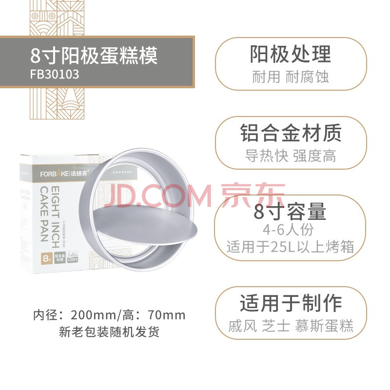 商品相册:法焙客(FOR BAKE)蛋糕模具8寸 活底阳极戚风海绵蛋糕模 圆形活底烘焙工具烤箱家用第