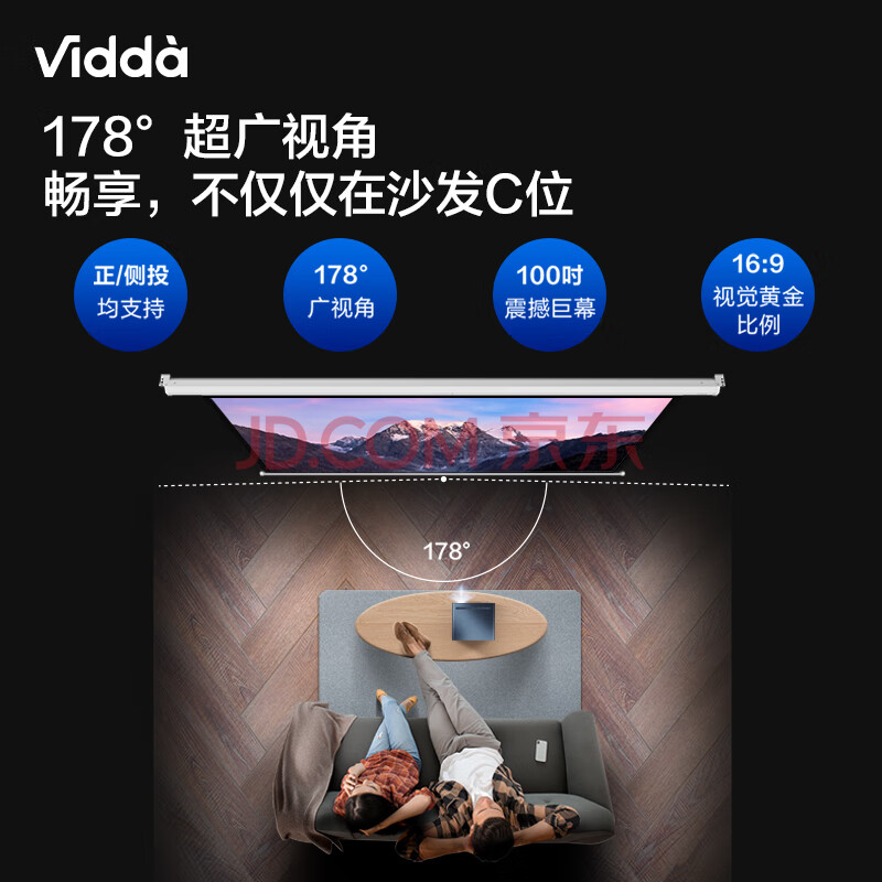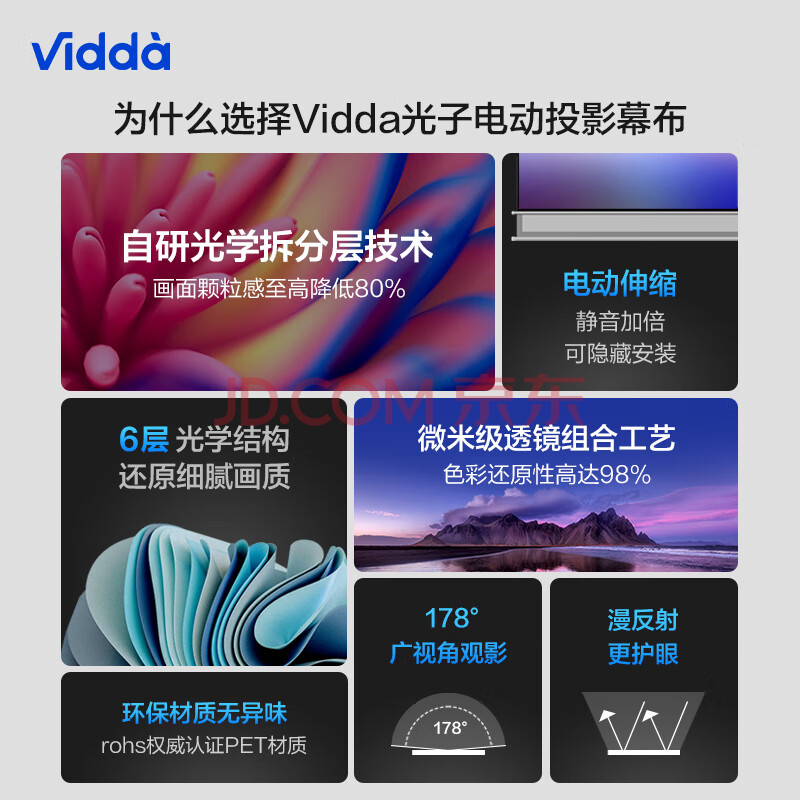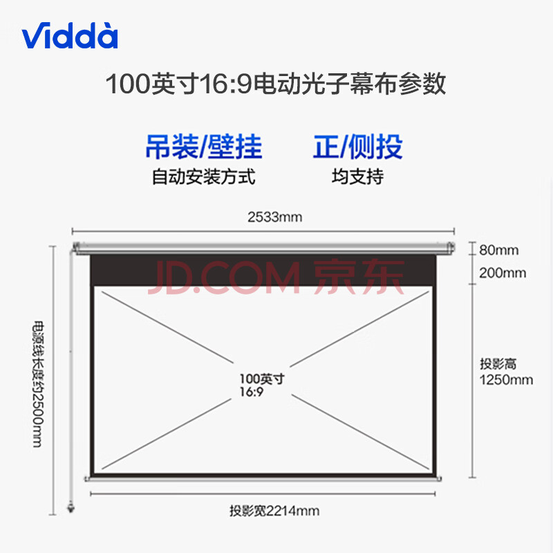 商品相册:Vidda 映画100吋光子电动幕布 专业适配三色激光投影 电动遥控抗卷边更耐用 海信C3/C2系列/M2 Pro可用第
