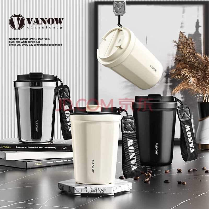商品相册:Vanow保温杯咖啡杯316不锈钢男女士高颜值学生便携水杯子 烟空白第
