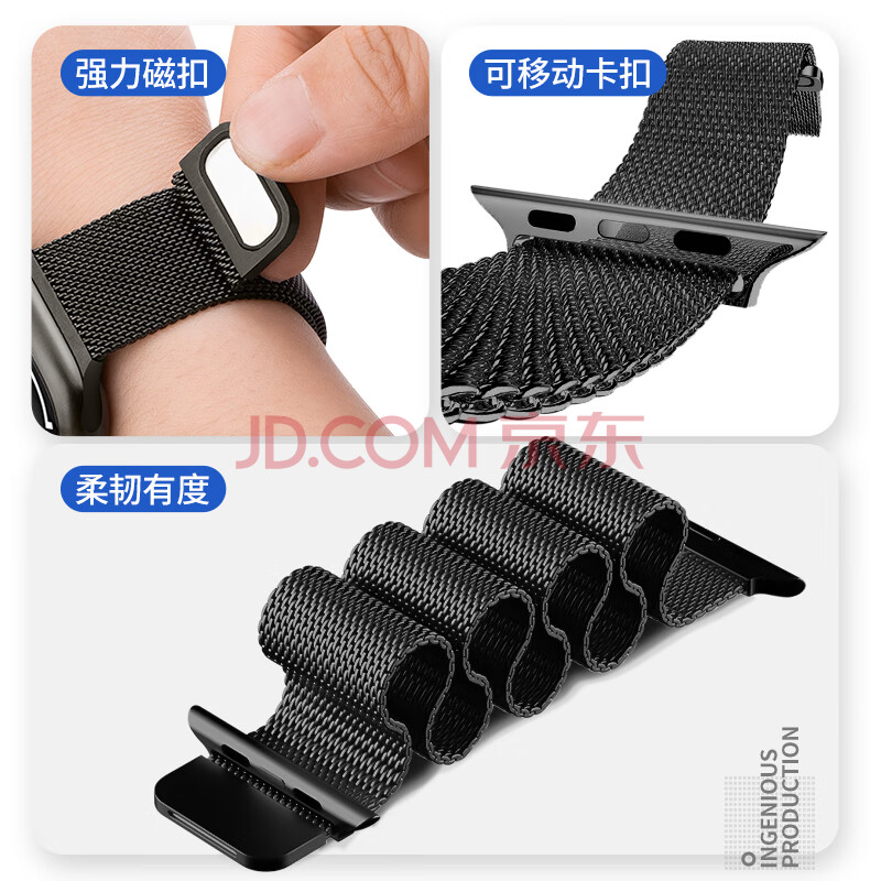 商品相册:威千图适用苹果手表表带apple iwatch S10/s9/8/7米兰尼斯Ultra2金属 44/45/49MM【磁吸搭扣·星光色】第