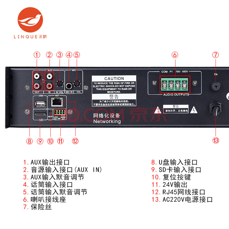 商品相册:灵鹊MS9650 功放机单位公园小区园林道路背景音乐网络化校园IP广播系统650W第