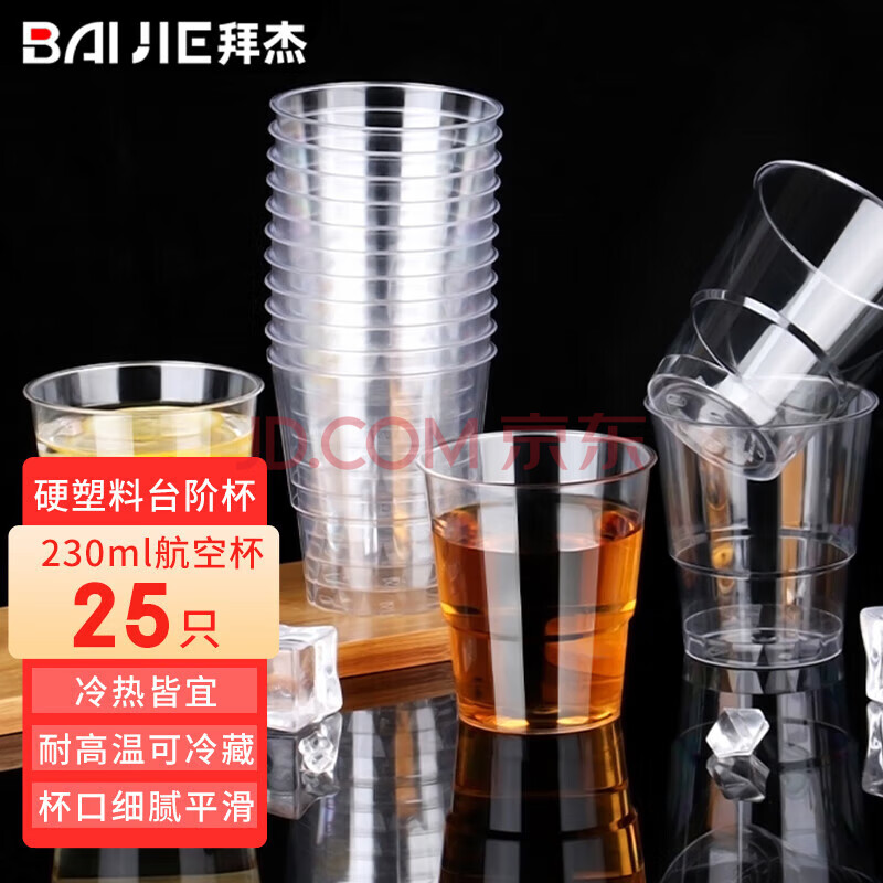 商品相册:拜杰航空杯230ml一次性杯子加厚商务杯硬塑太空杯一次性航空杯25只装第