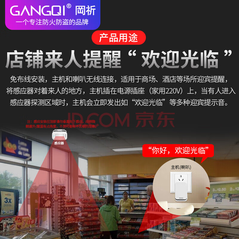 商品相册:岡祈(GANGQI)商铺进店欢迎光临感应器进门提醒开门迎宾器感应呼叫门铃家用防盗第