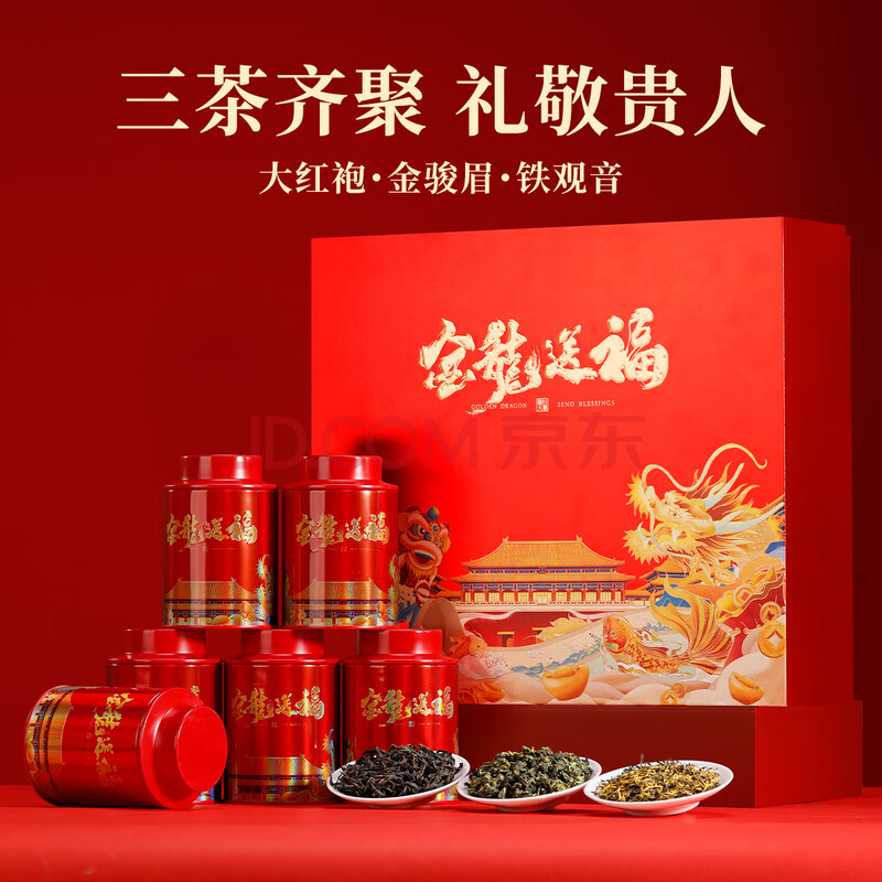 商品相册:七春茶叶 茶叶礼盒大红袍金骏眉铁观音组合256g 节日出游送老丈人礼品第