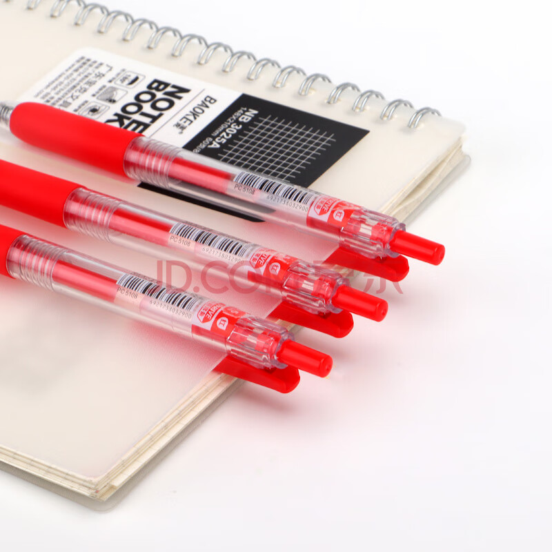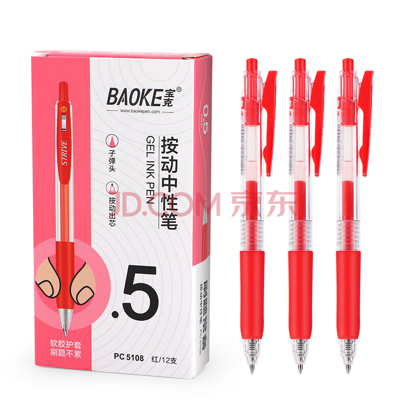 商品相册:宝克(BAOKE)PC5108 按动中性笔0.5mm子弹头水笔签字笔 红色 12支/盒第