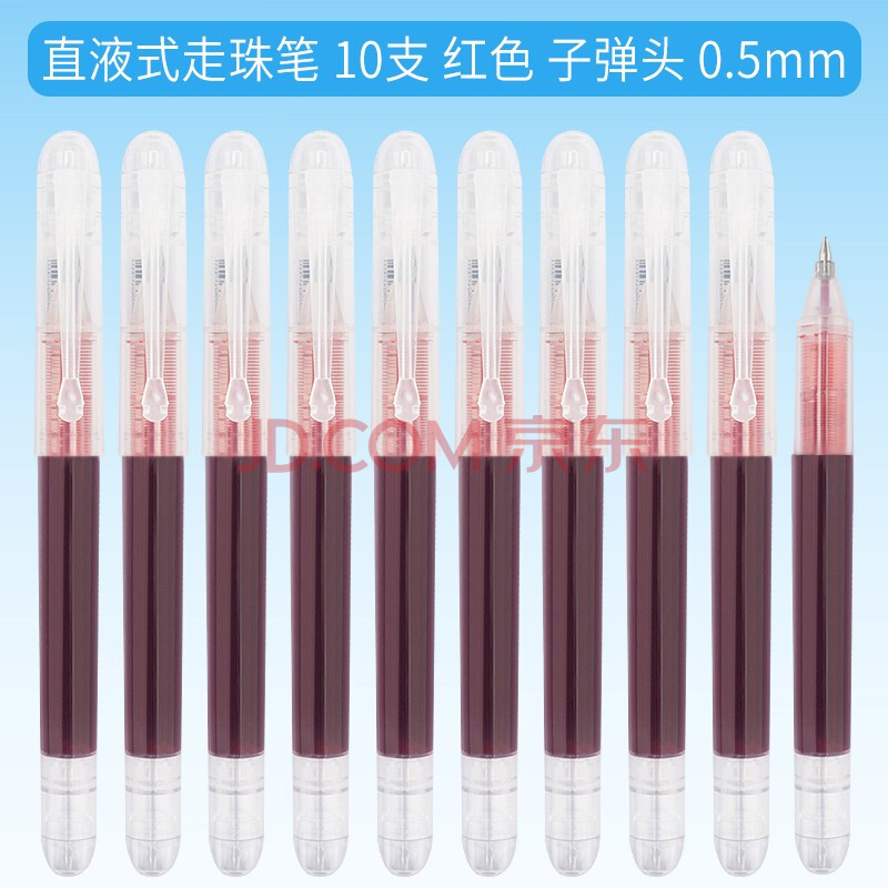 商品相册:白雪(snowhite)R50双子星直液式走珠笔简约学生用考试专用水笔速干子弹型商务办公签字笔中性笔红色10支第