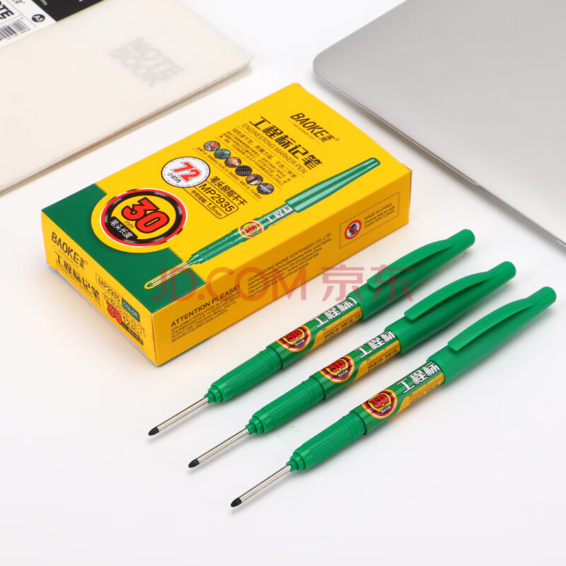 商品相册:宝克(BAOKE)MP2935长头工程记号笔油性多用途 笔头长度30mm长嘴细头标记笔 绿色 12支/盒第