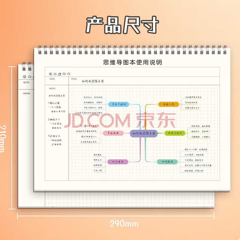 商品相册:嘉然恒 A4大号思维导图康奈尔笔记本本子线圈本高效学习工作计划本记事本文具大学生考研复习网格本第