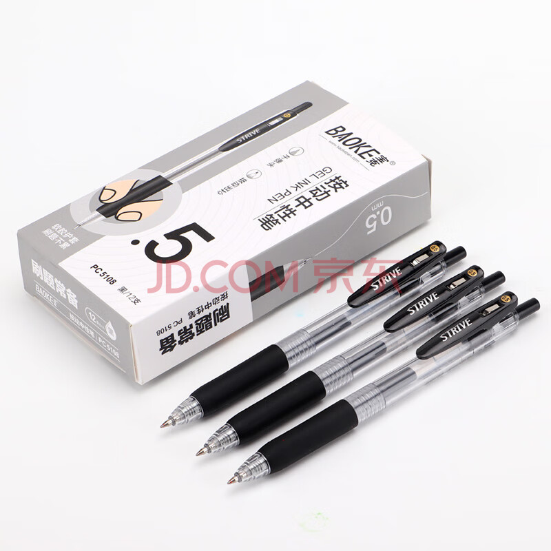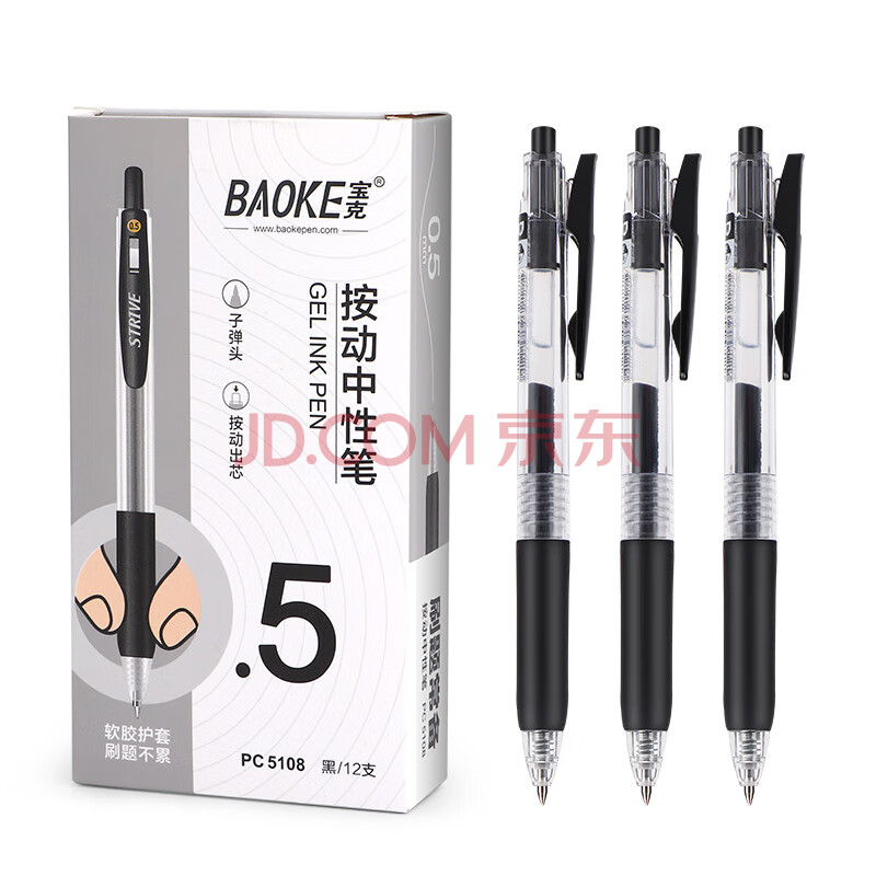 商品相册:宝克(BAOKE)PC5108 按动中性笔0.5mm子弹头水笔签字笔 黑色 12支/盒第