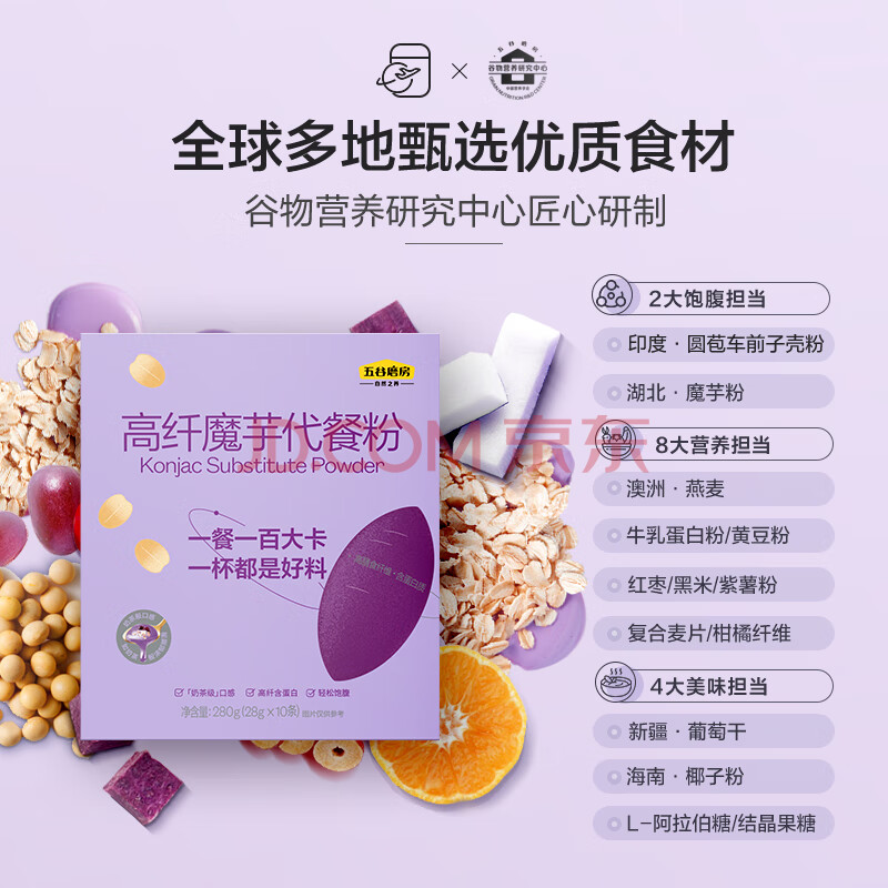 商品相册:五谷磨房魔芋代餐粉紫薯燕麦片饱腹速食早餐粉280g第