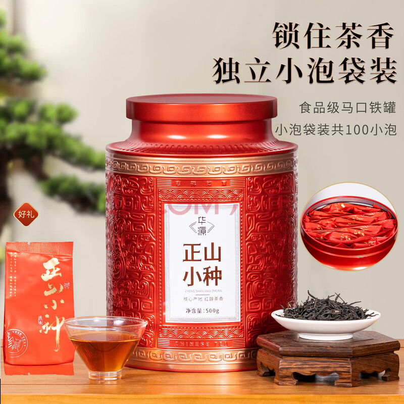 商品相册:华源红茶叶正山小种罐装500g(独立泡袋)特级浓香型新茶叶送礼盒装第