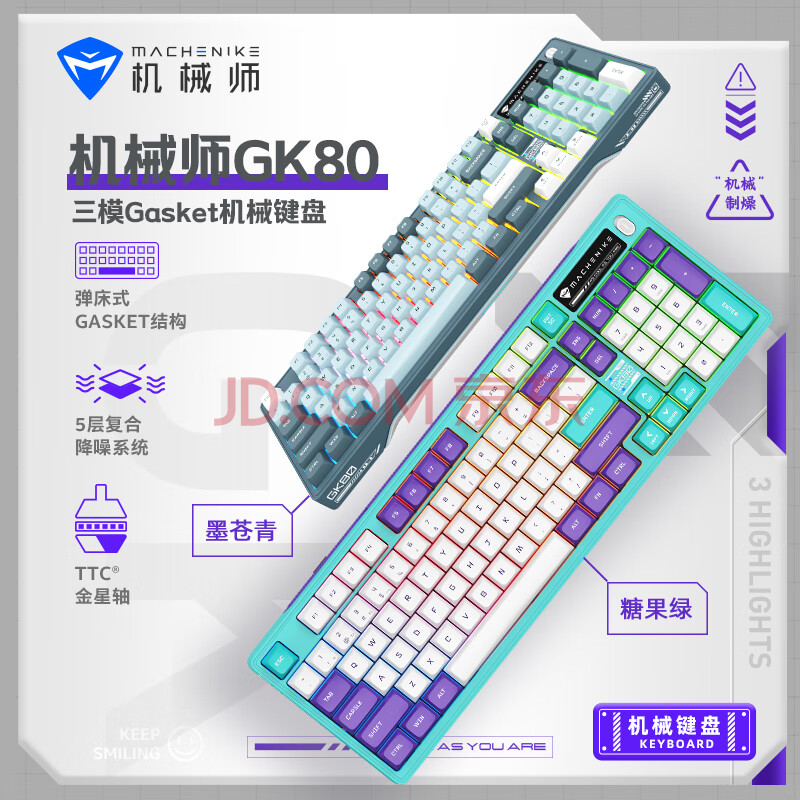 商品相册:机械师(MACHENIKE) GK80 机械键盘三模gasket结构无线游戏键盘有线蓝牙键盘 糖果绿 TTC金星轴第