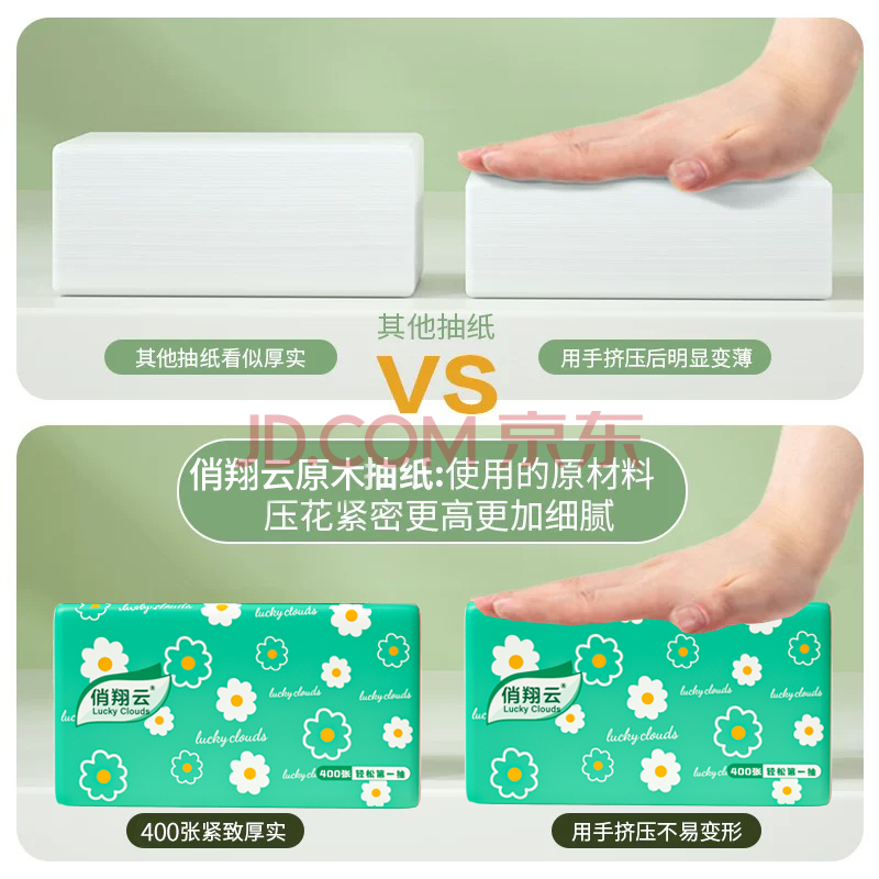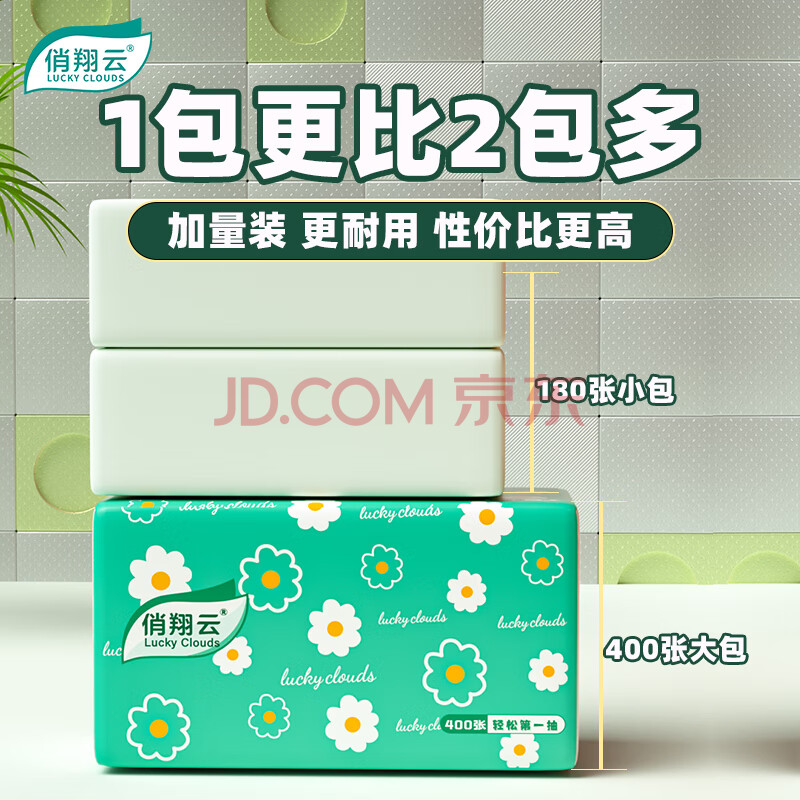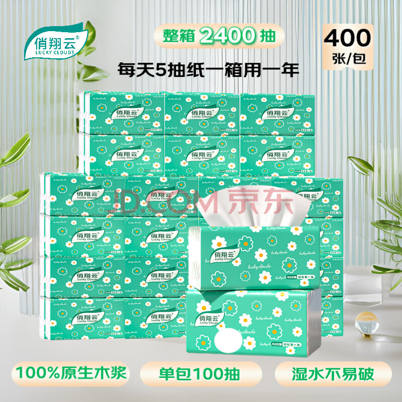 商品相册:俏翔云绿韵雏菊抽纸4层400张*24包原木纸巾餐巾纸整箱家用 源头直发包邮第