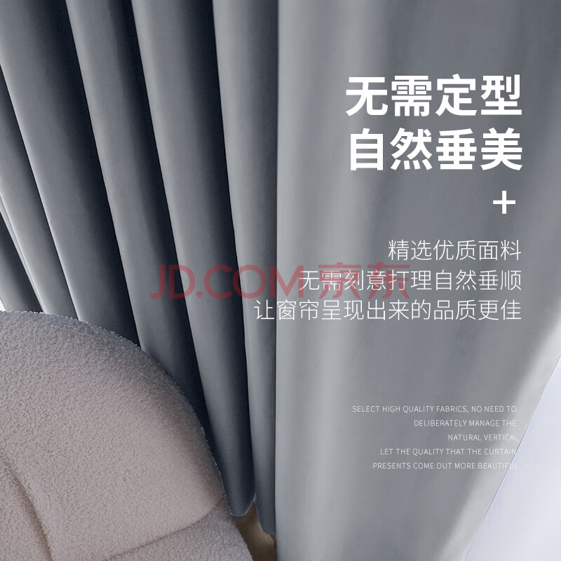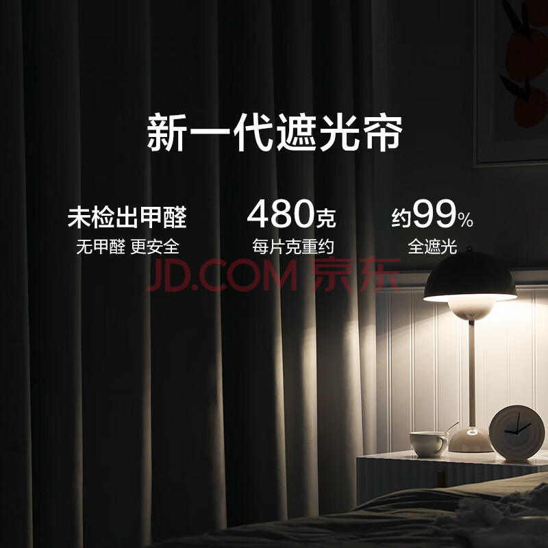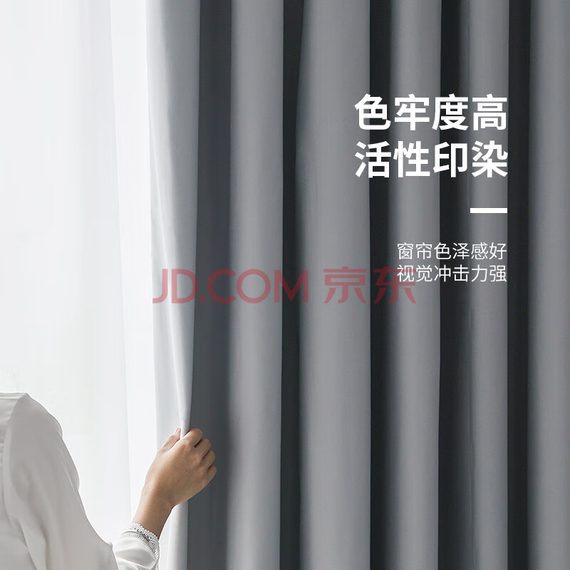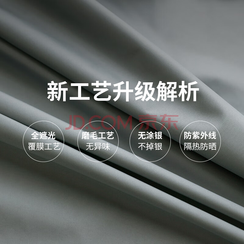 商品相册:京东京造黑胶浅灰窗帘 99%全遮光窗帘布飘窗卧室遮阳帘挂钩式 宽1.5*高2米第